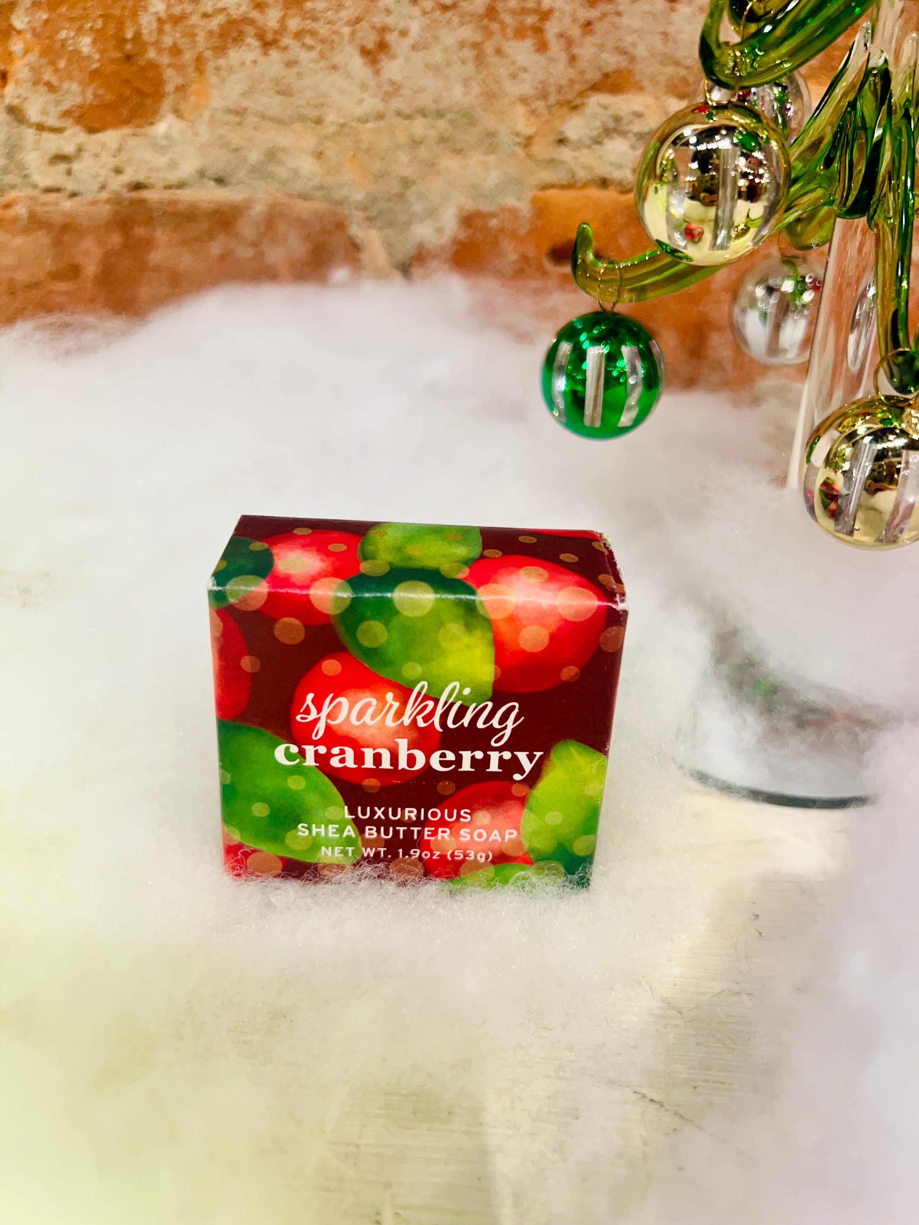 - SPARKLING CRANBERRY: Bar soap enriched with shea butter, cranberry oil & grapeseed oil and blended with dried cranberry & oat flour. Bottled spa products enriched with shea butter and cranberry oil.