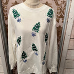 Grab our newest favorite holiday sweatshirt by Mary Square.  This adorable sweatshirt adhorned with a blue Christmas vibe is very cozy!