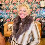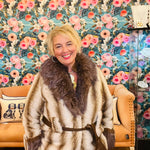 Can you say stunning? This coat by Beulah Style is fit for a queen! Look like you stepped straight off the streets of NYC this winter. It features a fur trim collar, cuffs & a belted tie around the waist