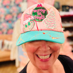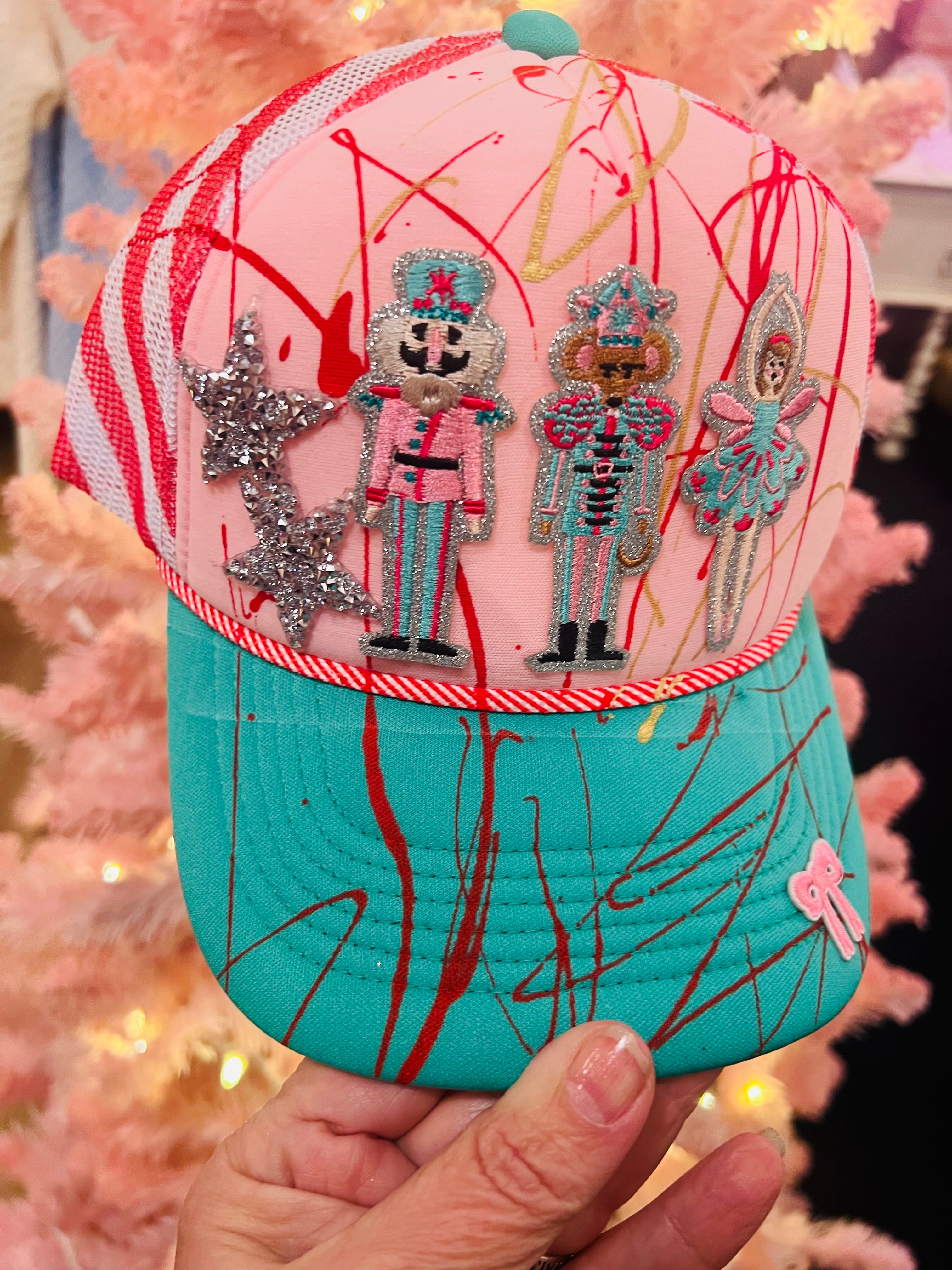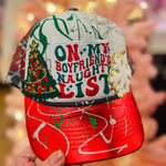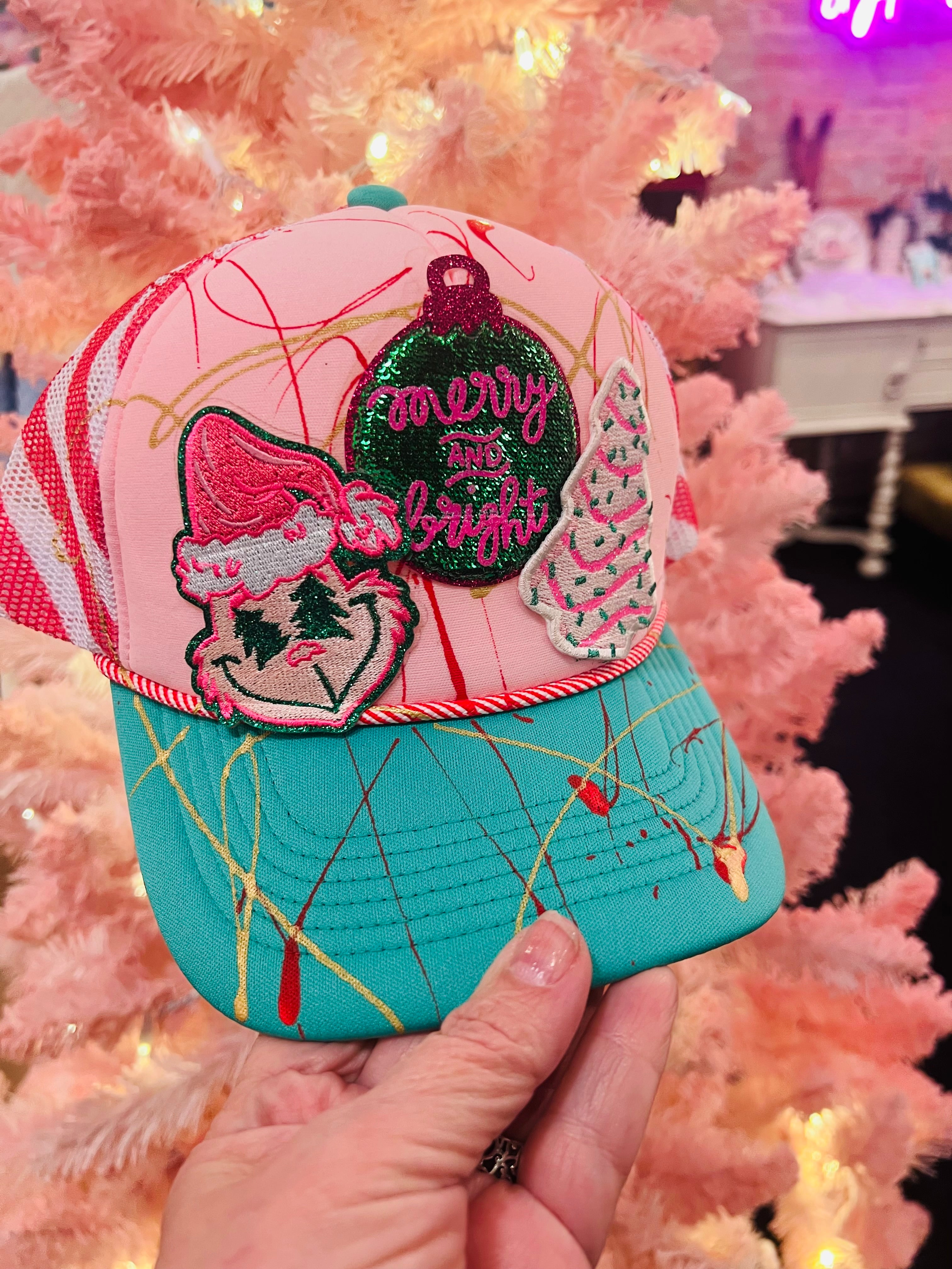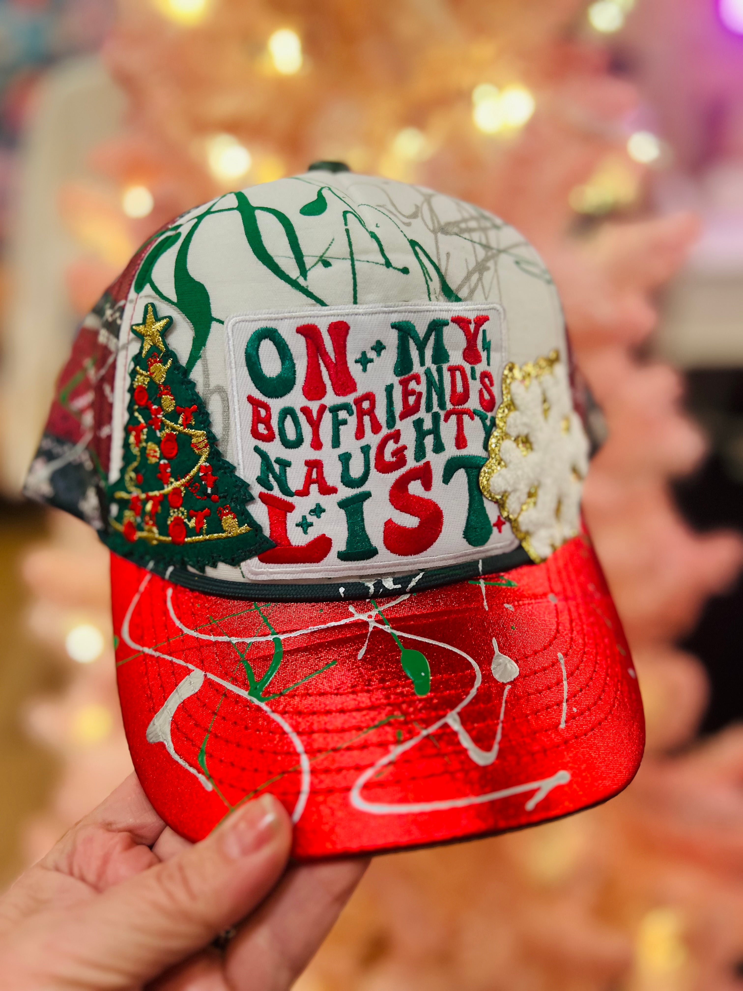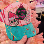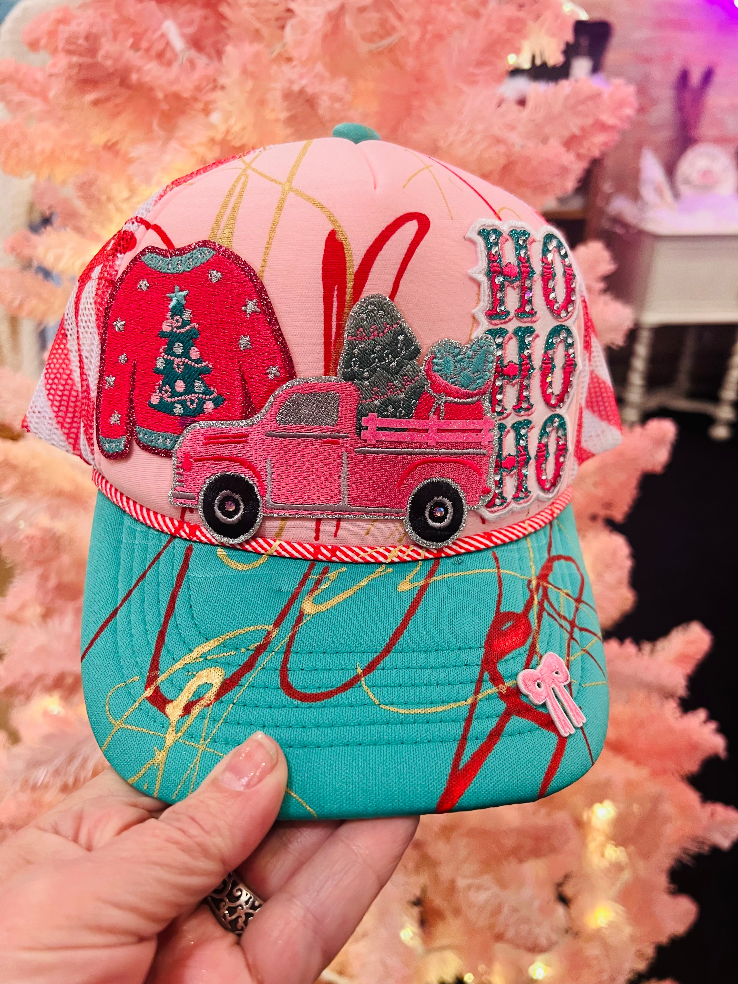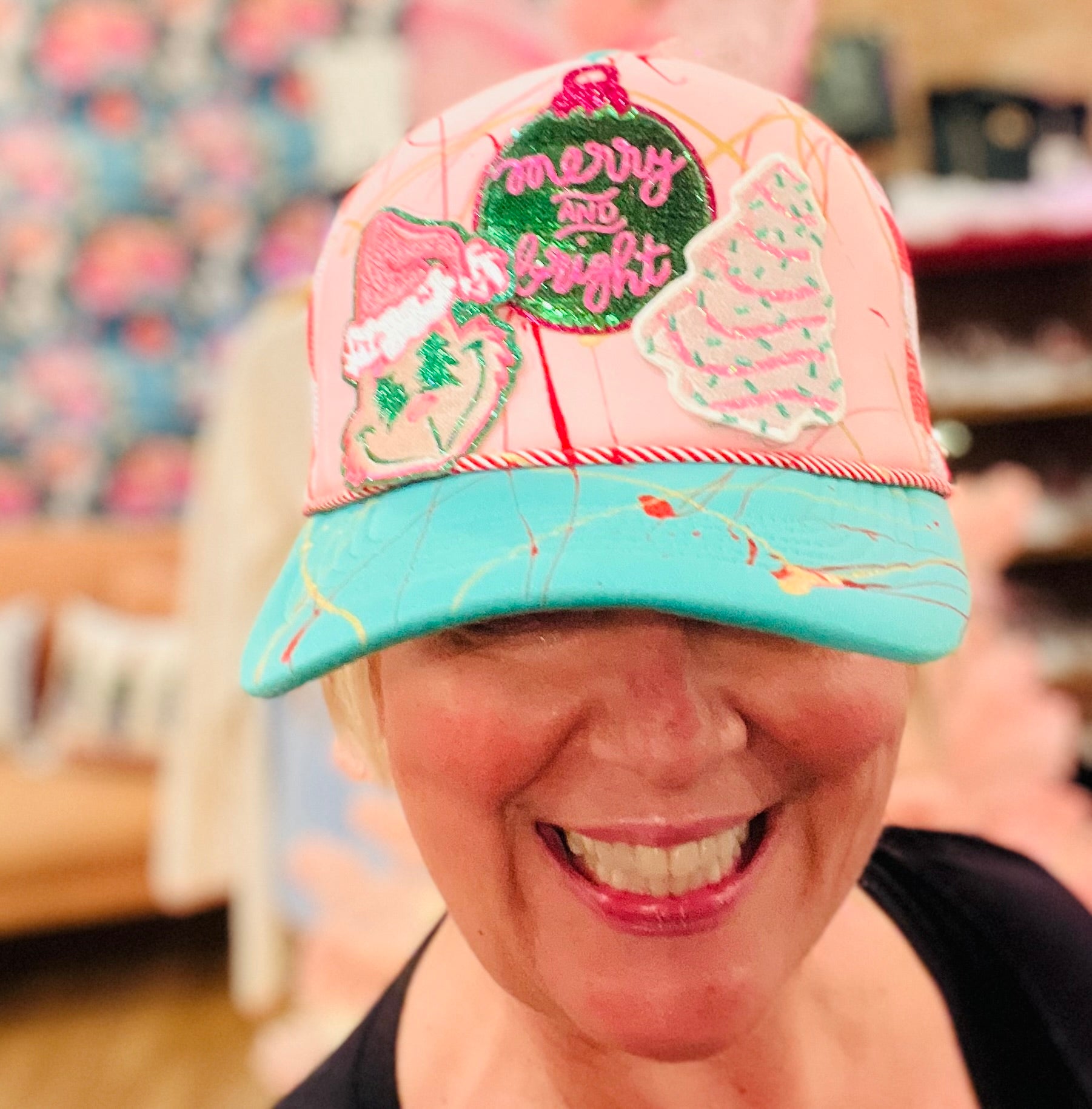 These boujee over the top holiday trucker hats are one of a kind. Either the Christmas Candy Cane or Metallic Christmas Sweater trucker hats have been embellished with splashes of fun paint and our top of line boujee patches. You will be the only one with the hat you choose