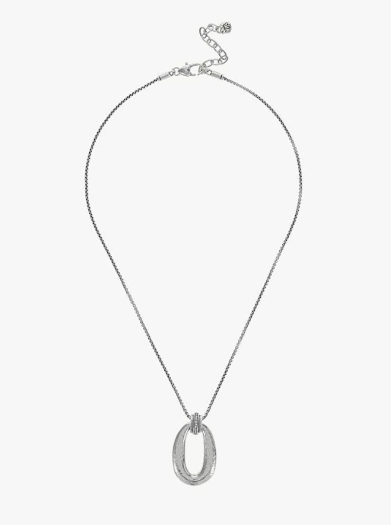 Brighton Meridian Lumens Pendant Necklace - Necklace : Silver : The Brighton Meridian Lumens Pendant Necklace Lumens refers to a measurement of the brightness of light - an apt name for this light-reflecting jewelry with cool sculptural hammered links. Tuck the piece away when not wearing. Keep it away from water, jewelry cleaners, and harsh chemicals. It is not designed to be worn 24/7, so give your beautiful piece a break once in a while. Lobster clasp closure. Style# JM4981. Silver