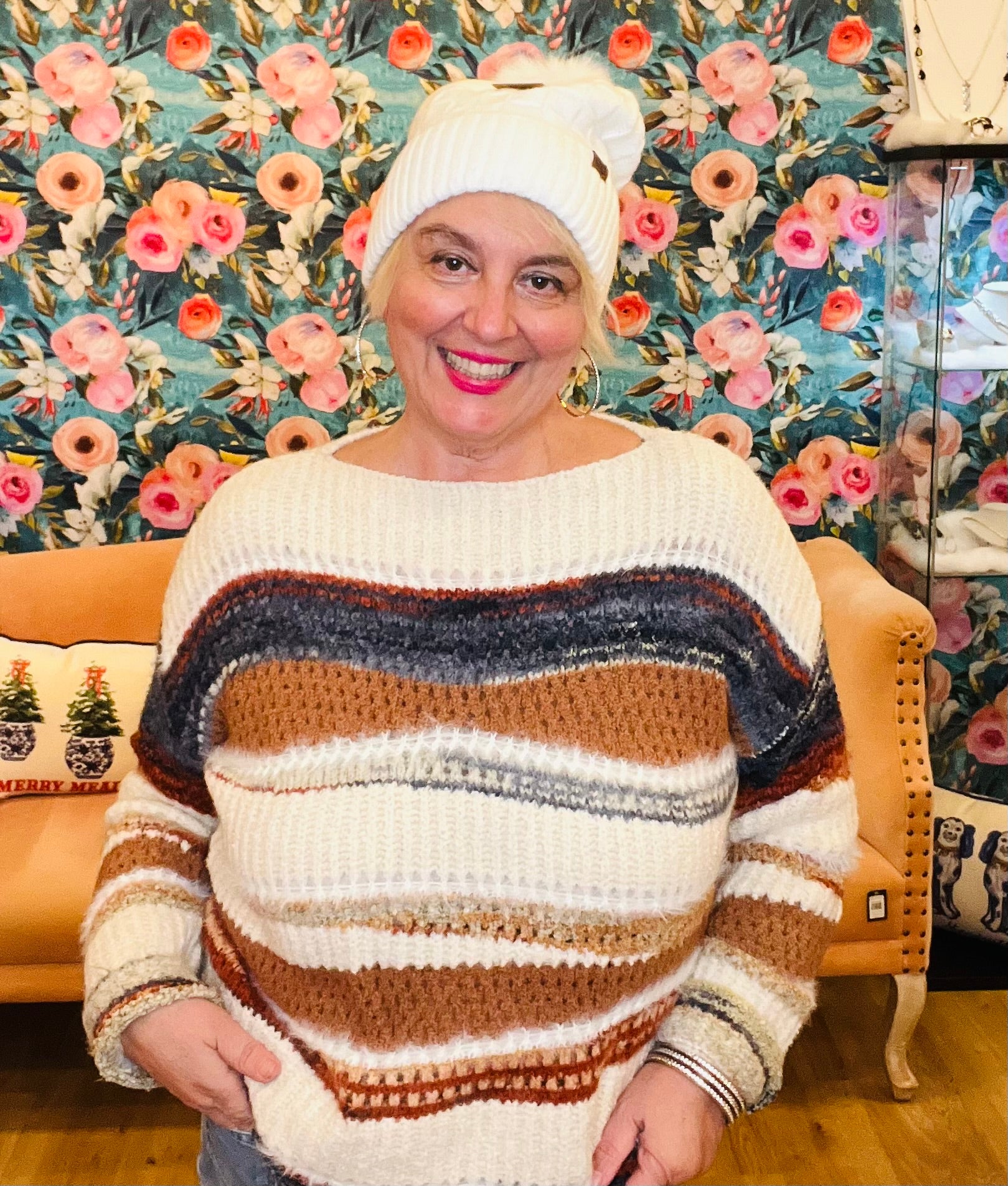 This Patchwork Drop Shoulder Sweater from Charlie B features loads of style and texture and is perfect for trips to the pumpkin patch!
