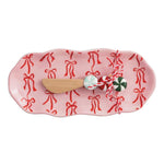 Celebrate the festive season with our charming Christmas Everything Dish Set, a delightful 2-piece collection perfect for holiday gatherings. The set features a beautifully crafted ceramic everything plate, ideal for serving a variety of appetizers, snacks, or desserts. Accompanying the plate is a wooden spreader, designed with a hand-painted figural ceramic handle that adds a touch of whimsy and elegance to your table setting. The tray measures 4" x 9", providing ample space for your culinary creations, while the spreader is 5 1/2" long, making it easy to serve your guests with style. Made from high-quality dolomite, this set is not only durable but also a stunning addition to your holiday decor. Whether you're hosting a festive party or looking for the perfect gift, this Christmas Bow Everything Dish Set is sure to impress.