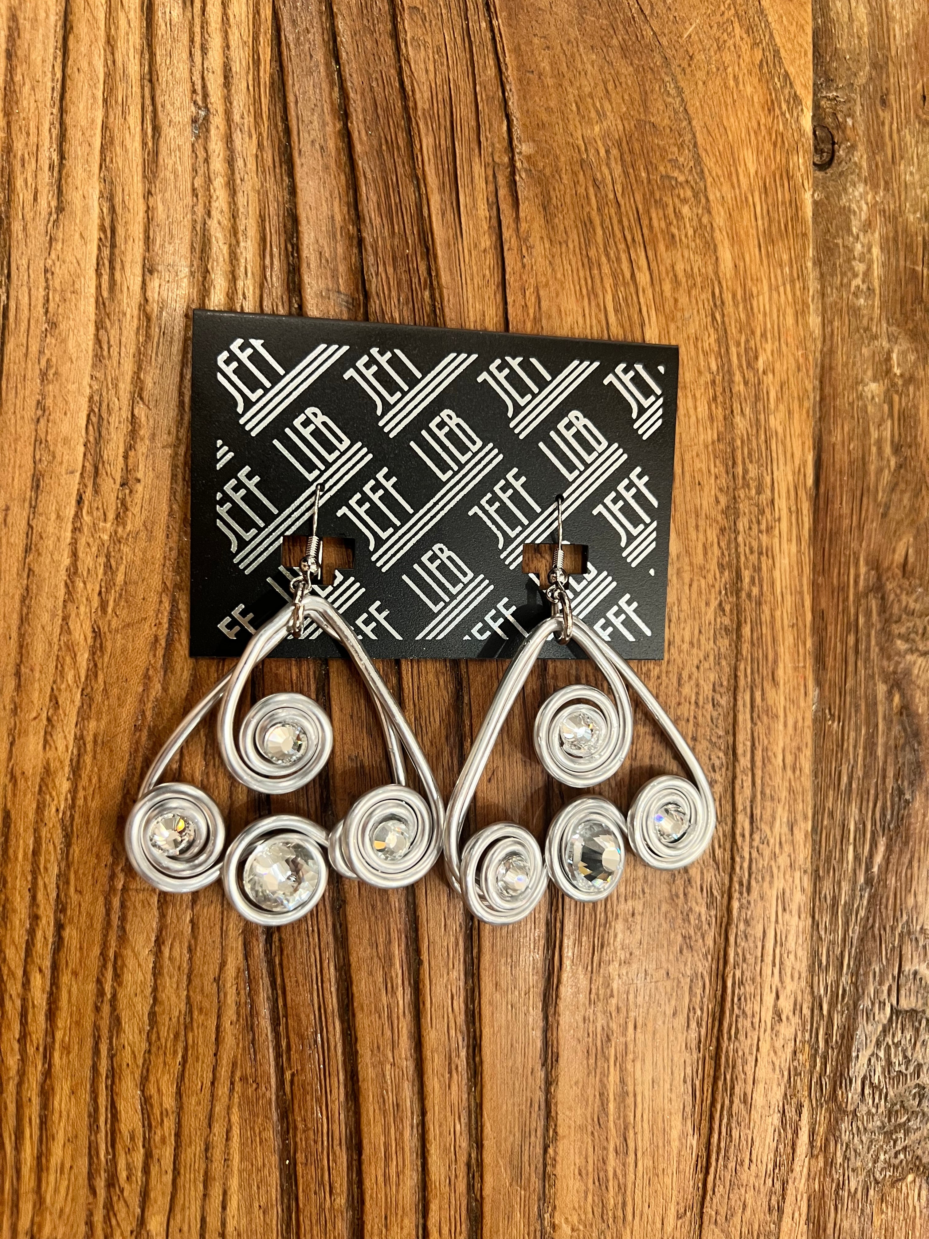 Jeff Lieb's high fashion jewelry designs are one of a kind! Just like wearable art. Each piece is hand crafted in the USA. Made out of aluminum and Swarovski crystals, each peace speaks for itself. The aluminum allows each piece to be light weight and flexible, adjusting to your neck and ears