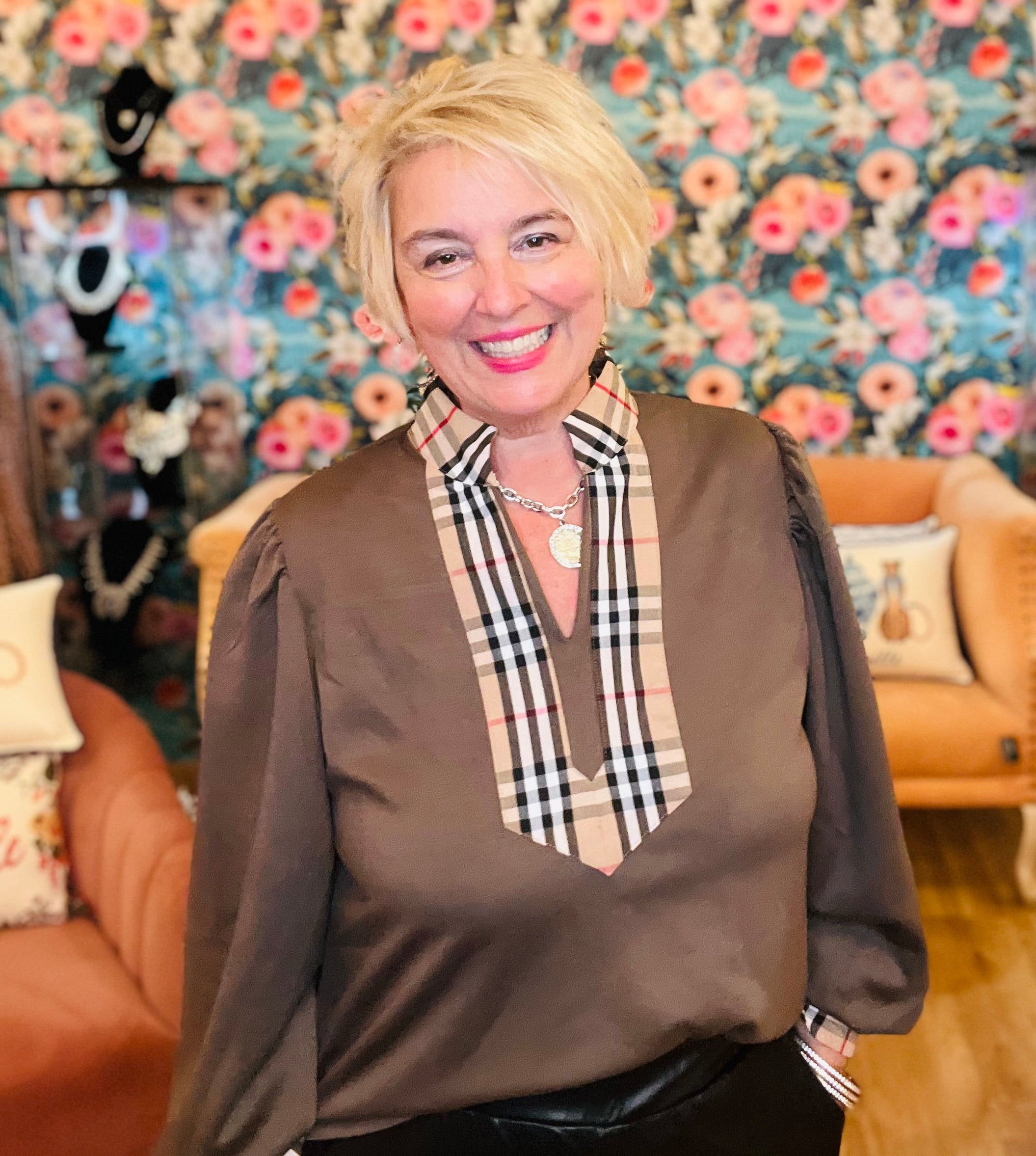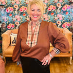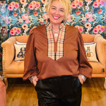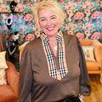Adding a pop of plaid to a top is such a fun touch! Our Classy Lady top by Entro comes in olive or brown & has a designer inspired plaid along the collar & neckline. It's a great work top or wearing for a shopping trip with the girls!