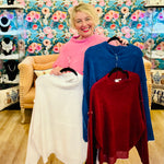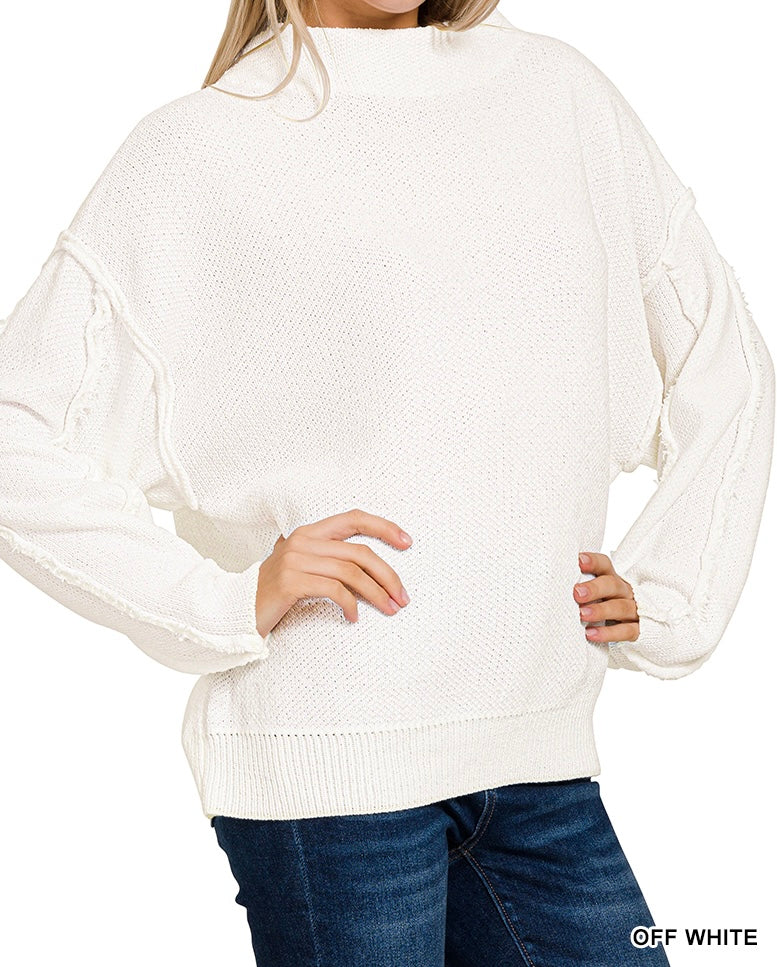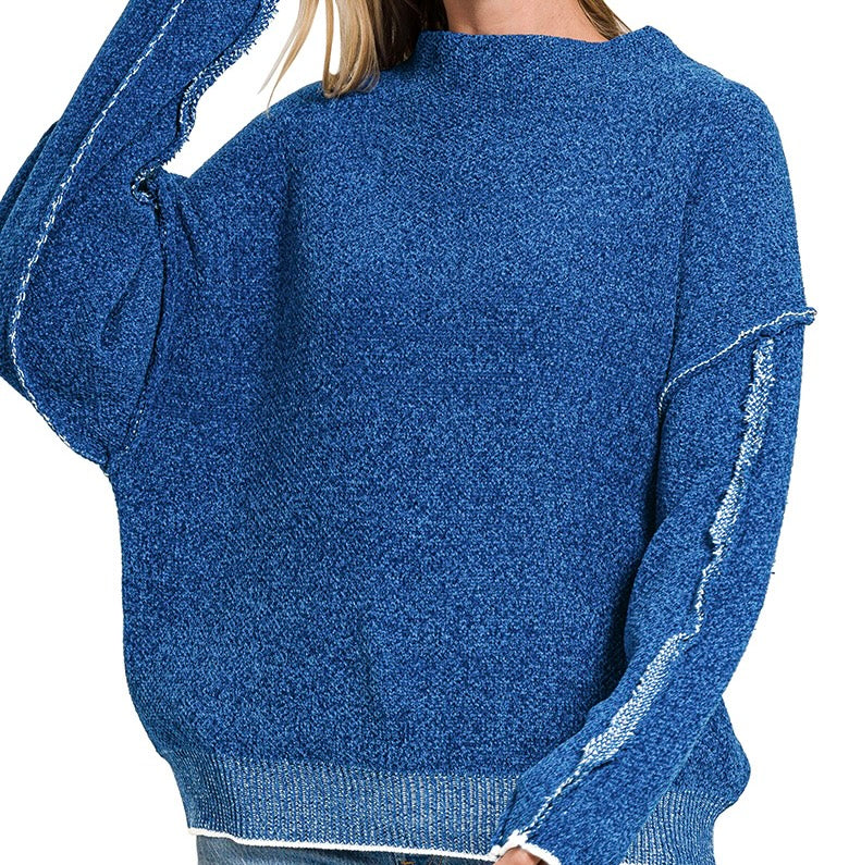 One of our favorites from Zenana! This cozy sweater has raw seam details & runs oversized. It's perfect paired with leggings & boots for the winter months