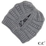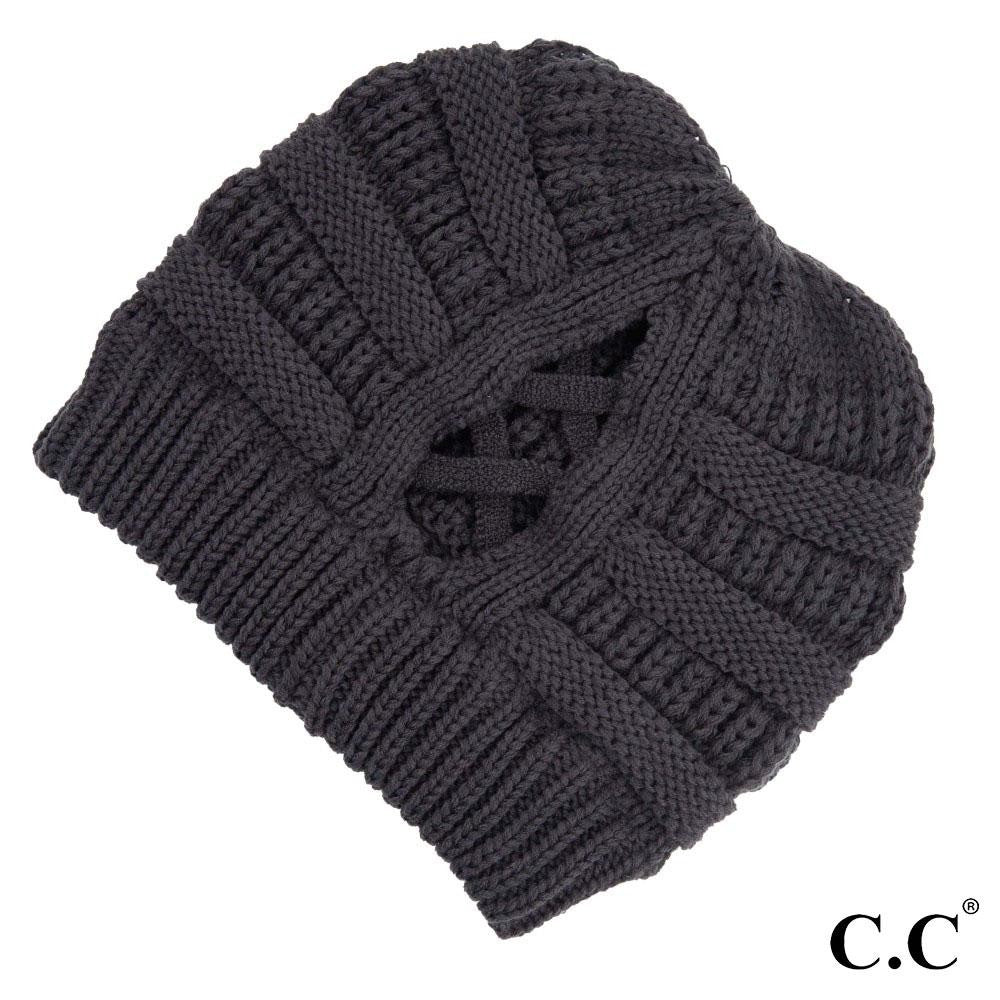 This is the PERFECT gift for the runner in your life! This ribbed CC beanie has a criss cross detail in the back to slip your pony tail right through