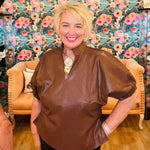 You won't be sorry wearing this baby! This faux leather top by Entro is buttery soft & looks amazing on. It's great for work or date night out!
