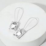 These minimalist crystal drop earrings feature sleek rectangular stones suspended from delicate loops for a modern, refined look. Perfect for everyday wear or formal occasions, they add just the right touch of sparkle and sophistication to elevate any outfit effortlessly.