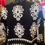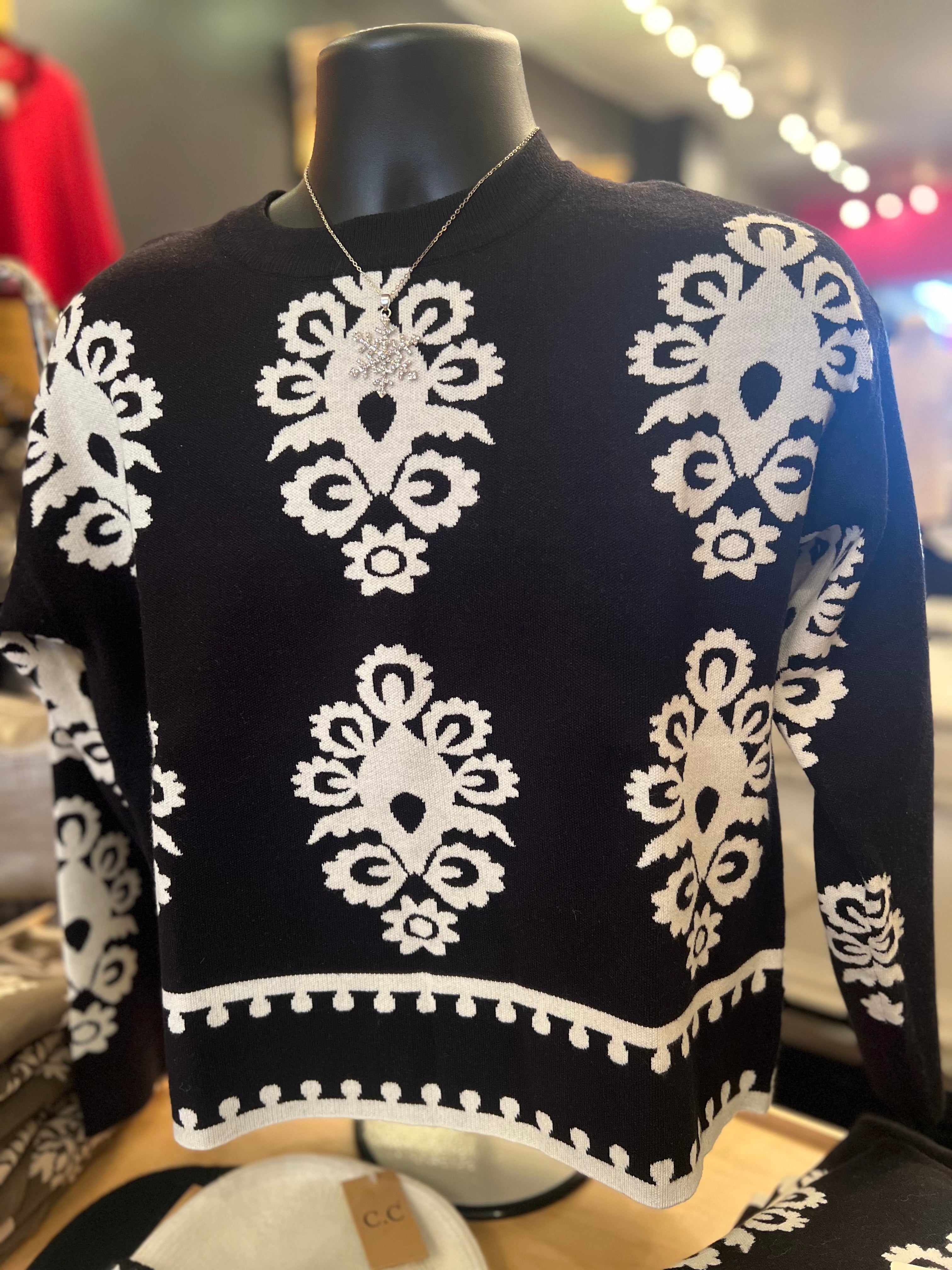 Black, white & classy! This knit sweater by Entro is timeless. Its comfortable with black leggings or dress it up for work with black slacks. It will never go out of style!