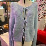 This fuzzy sweater features distinctive front ties that create a playful yet sophisticated look. The relaxed silhouette ensures comfort, making it a versatile piece for layering over tees. Pair it with slim jeans or a chic skirt for a balanced outfit, suitable for cooler evenings or transitioning seasons.