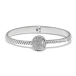 What a stunner; this hinged bangle has a bulbous encrusted pavé dome encircled by fine minuscule roping sitting at the heart of this roped hinged bangle. The perfect jewelry piece to finish off your outfit.