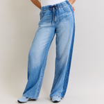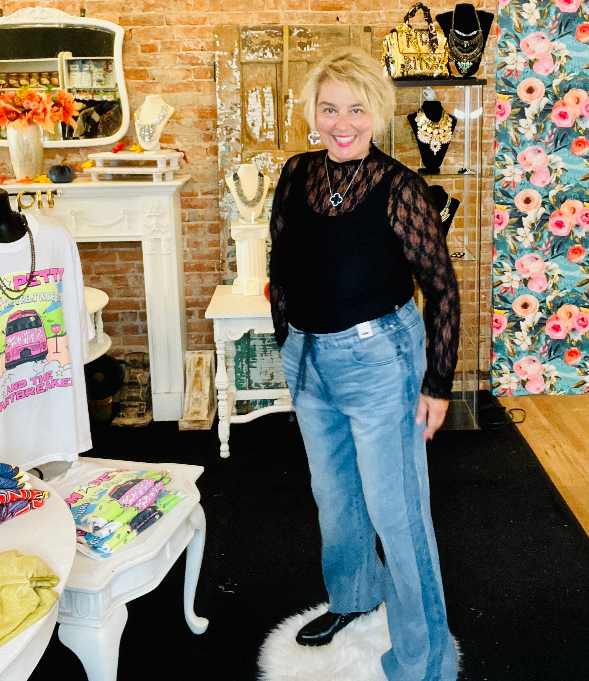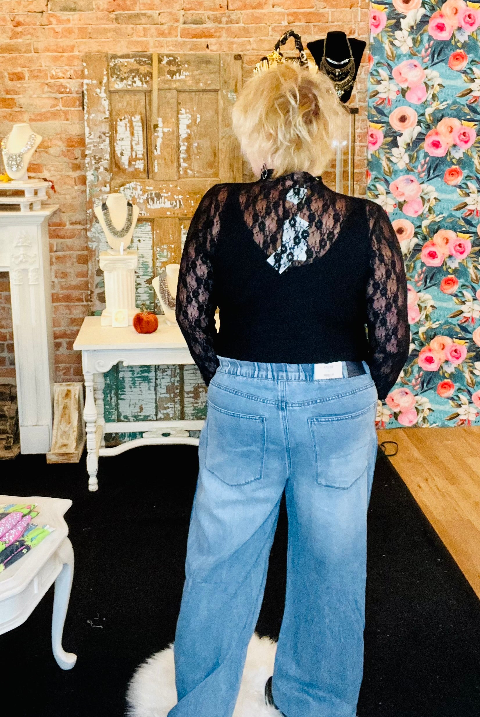The cutest new pair of Judy Blue Jeans with a fun flare! These wide leg elastic waist pants are flowy & comfortable. They are perfect if you don't want your typical jeans! Size down in Judy Blue's - size 6 goes to 5, 4 goes to 3, etc.