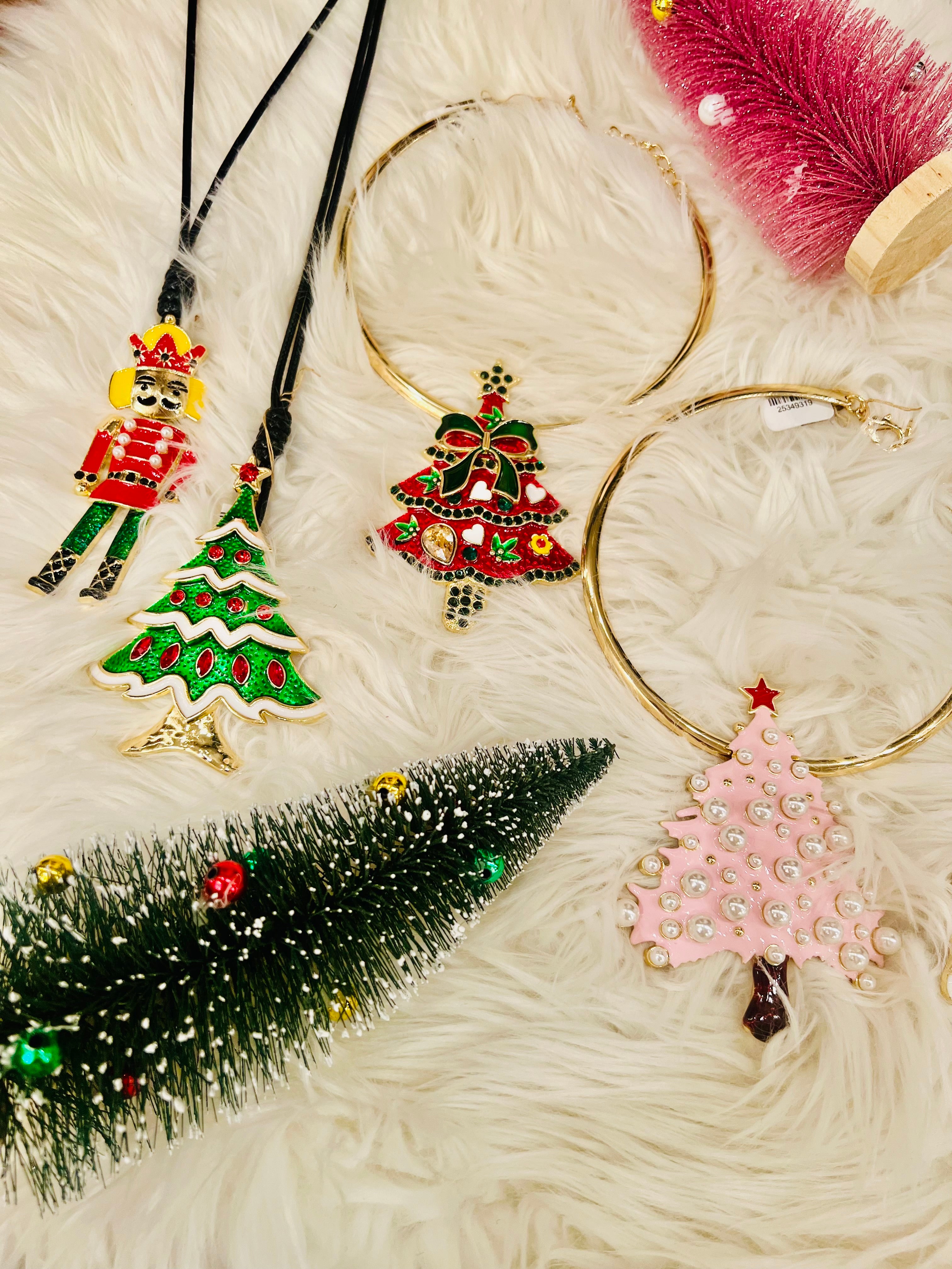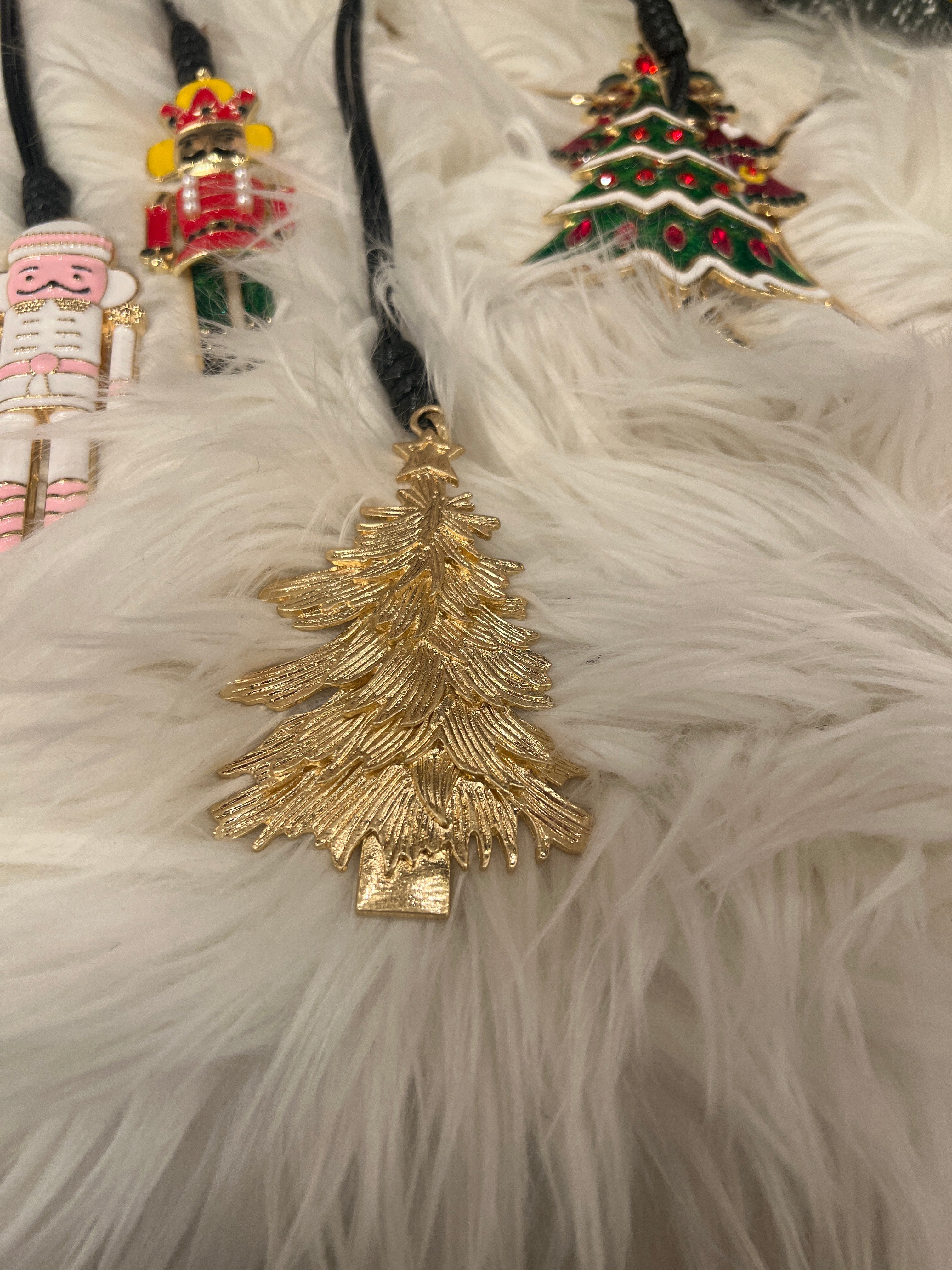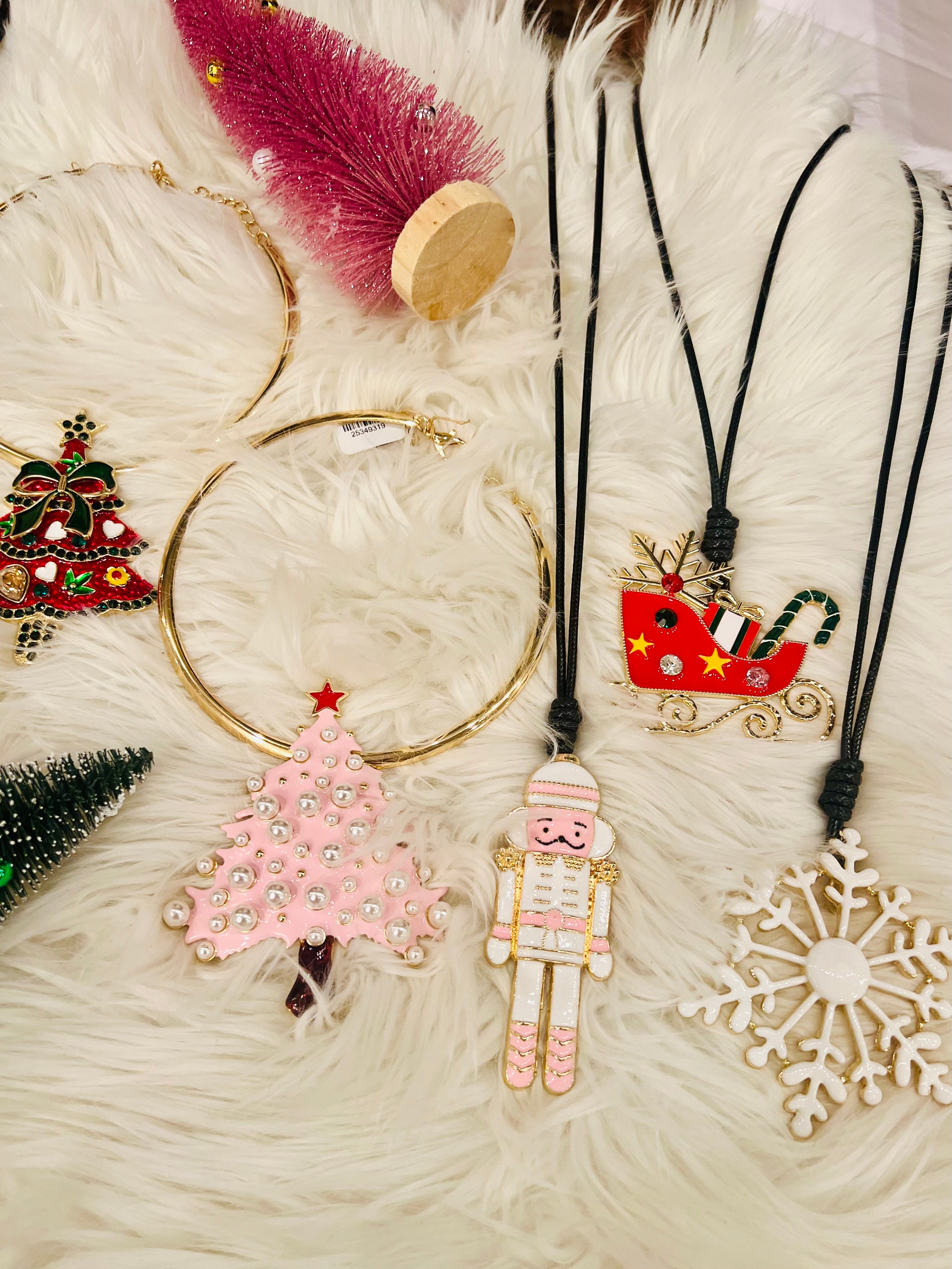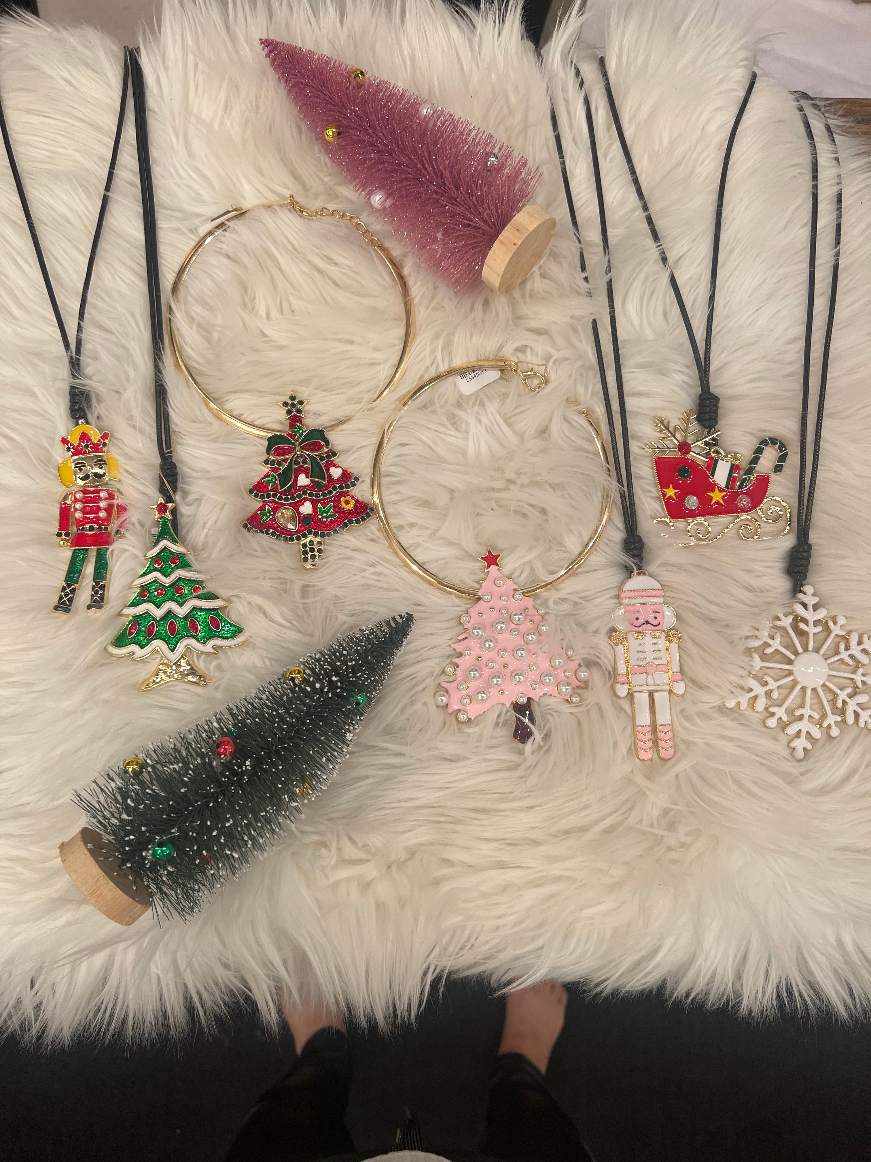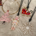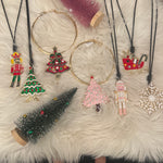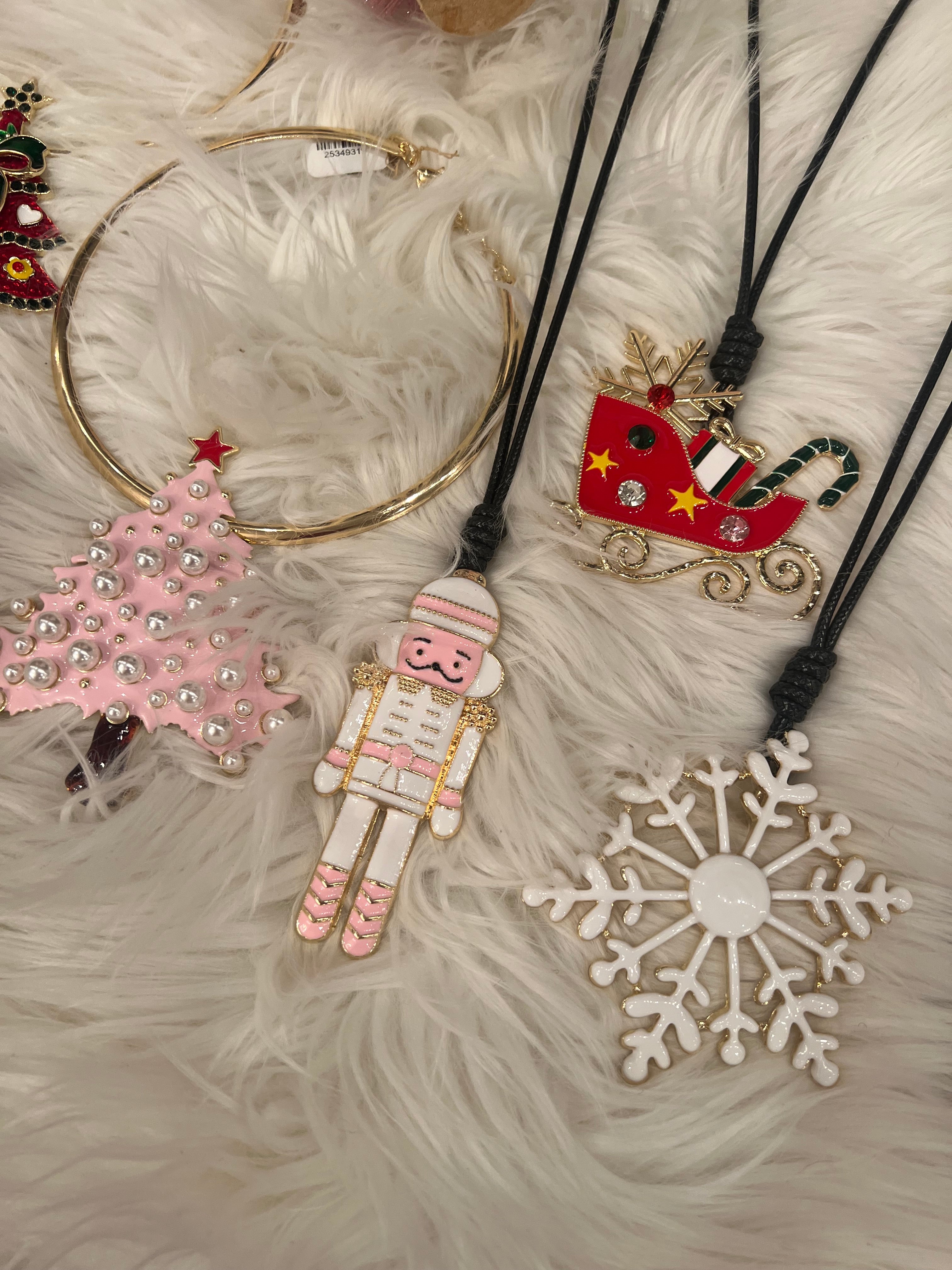 Let's spruce up those basic Christmas sweaters this holiday! This long leather chain features an enamel holiday pendant. Choose from a reindeer, sleigh, nutcrackers, snowflake, or several different trees!