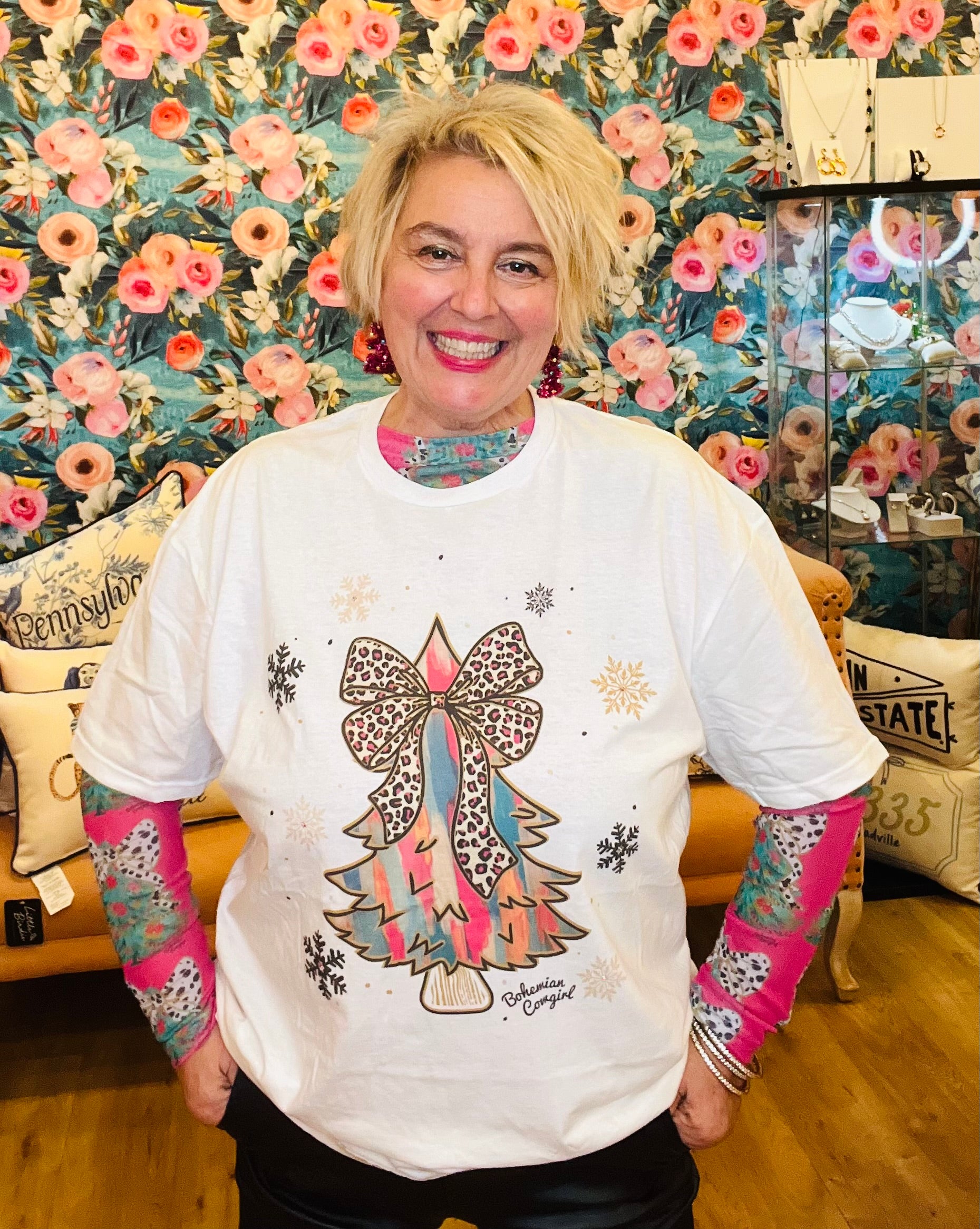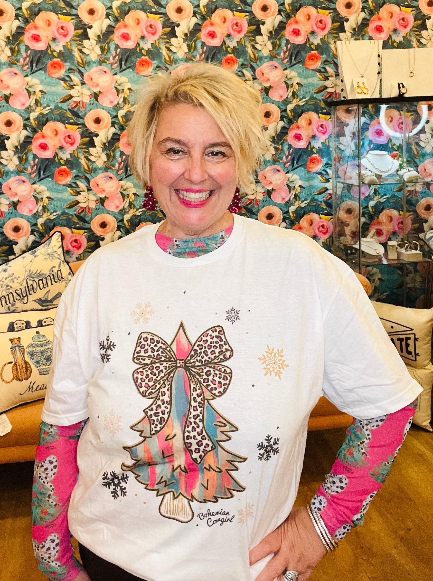 The perfect tee for holiday! These unisex sized shirts by Bohemian Cowgirl are festive, comfortable & cute! Each tee is short sleeve & features a fun holiday graphic printed on the front