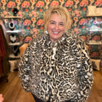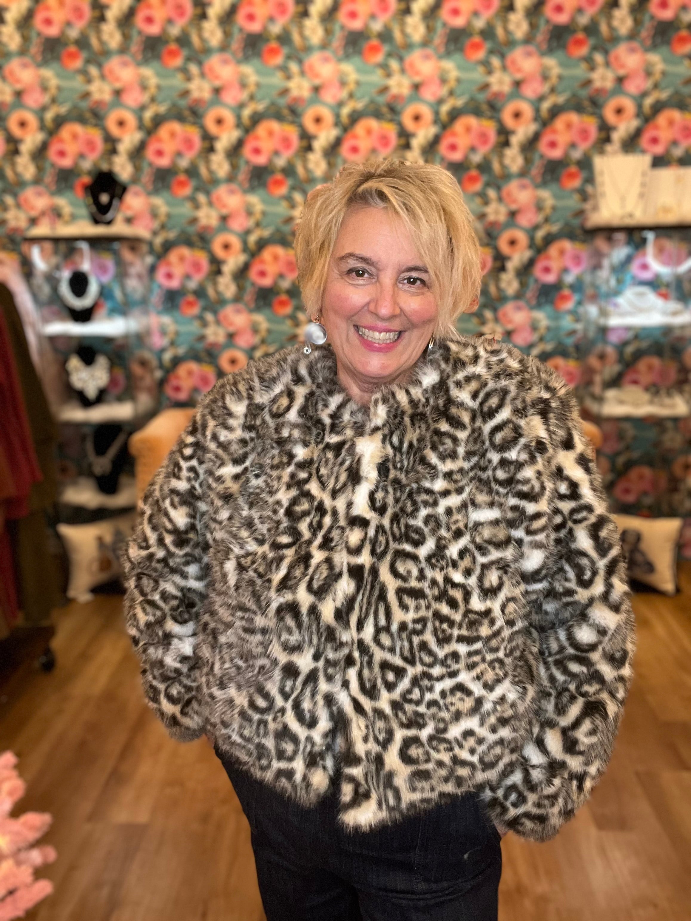 Hello lovely leopard! This gorgeous faux fur coat is in stunning & feels so soft to the touch. It is the perfect dressy coat to wear to a winter wedding