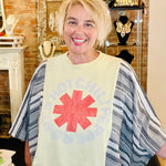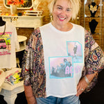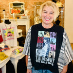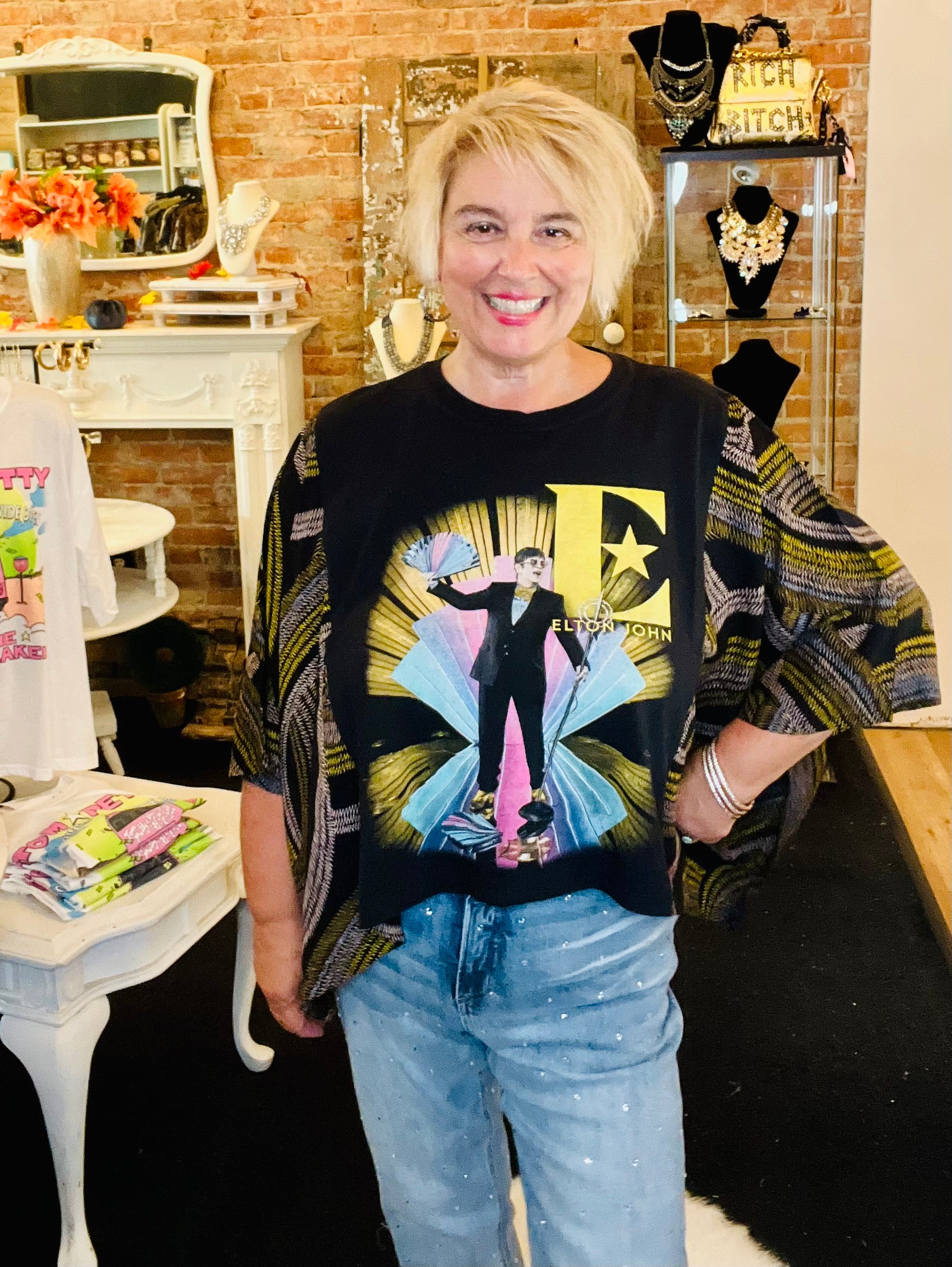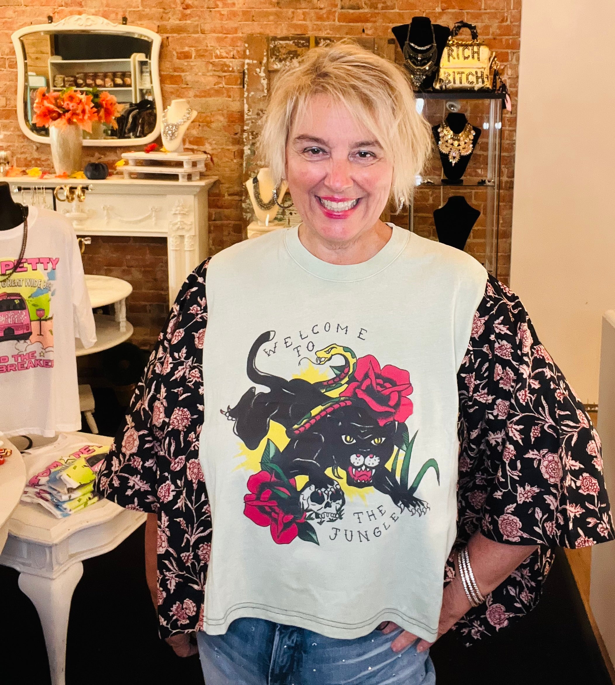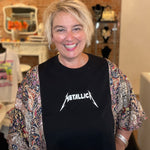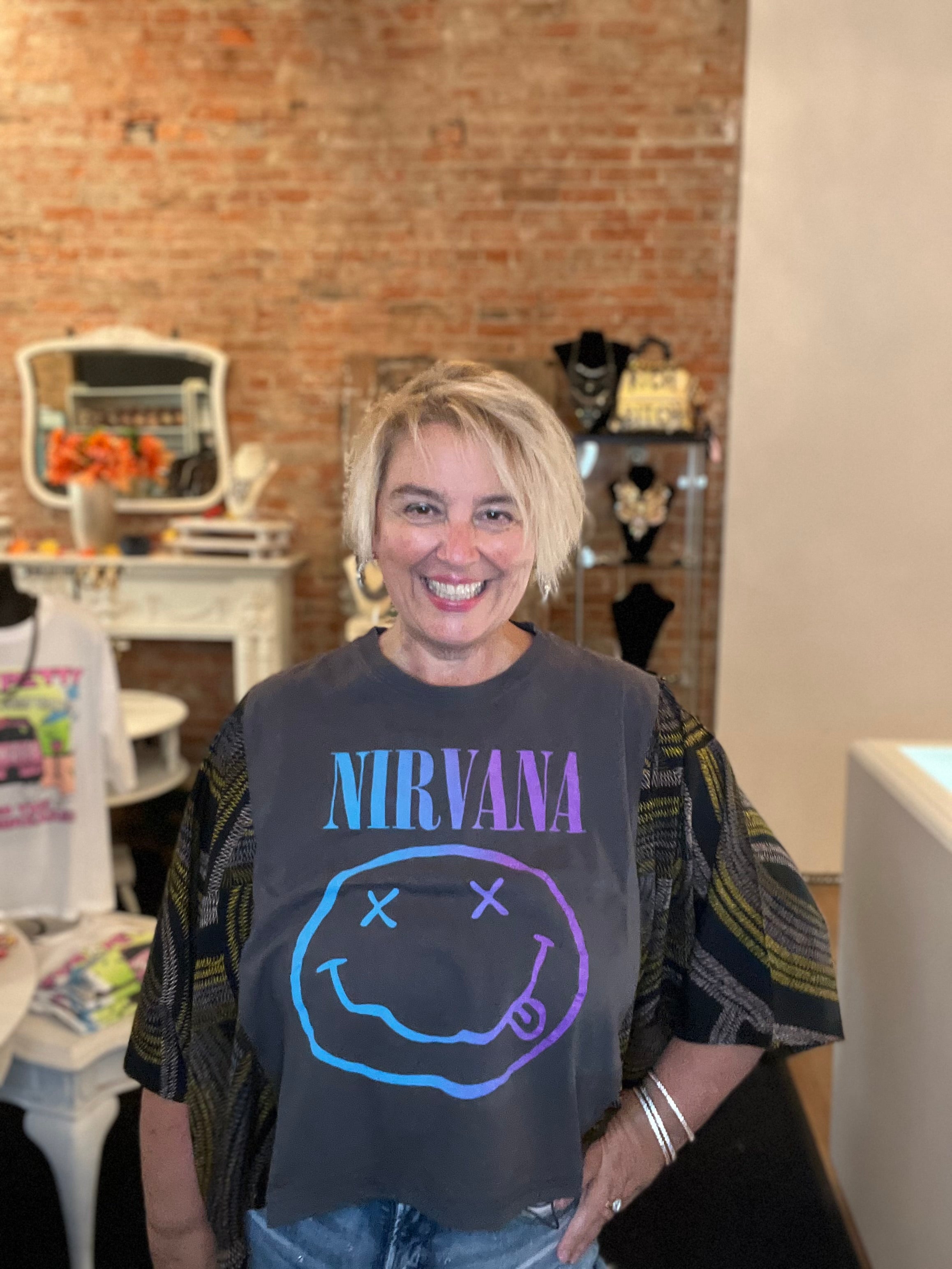 These pieces have been made using upcycled Rock band tees, each piece is one-of-a-kind and designed combining deconstructed vintage denim and upcycled band tees. This diverts it from the landfills and gives it new life.