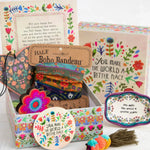 • 6 Irresistible Treasures! Includes: Air Freshener, Artisan Trinket Dish, Half Boho Bandeau®, Mini Canvas Pouch, Sticker & Wishing Bracelet