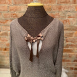 Bows & glitter? Yes please! This one size fits most sweater has a cute satin bow detail on the back & shimmery yarns throughout. Wear it with leggings, jeans or even a sparkly tulle skirt!