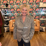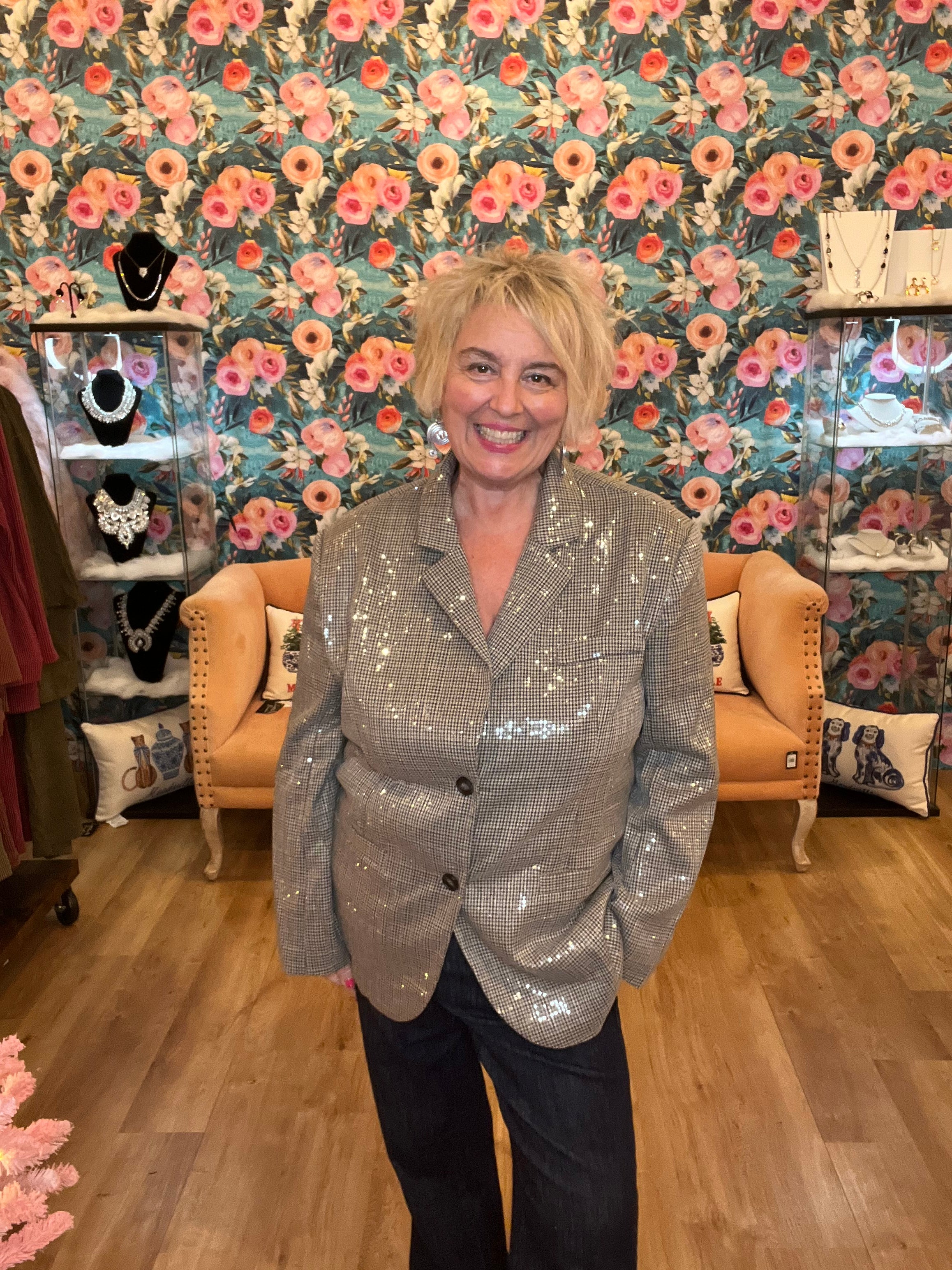 We're taking the popular menswear trend to the next level! This oversized plaid blazer is covered in sequins, making you really shine. Pair it with brown slacks for work or wear it for girls night with a pair of jeans