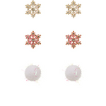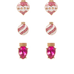 We're dreaming of a pink Christmas! This glitzy set of earrings comes with 3 dainty pairs of holiday fun. Choose from snowflakes or ornaments