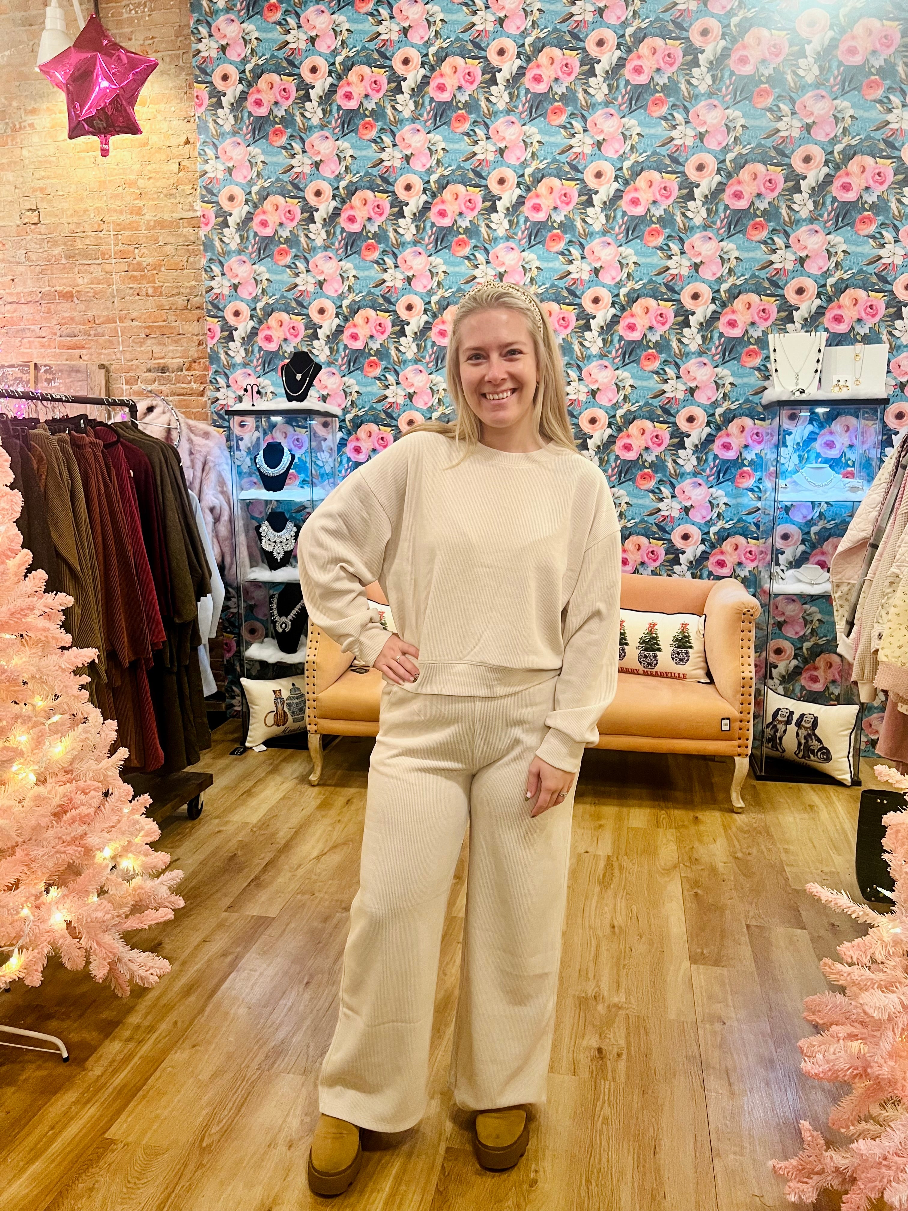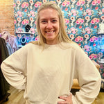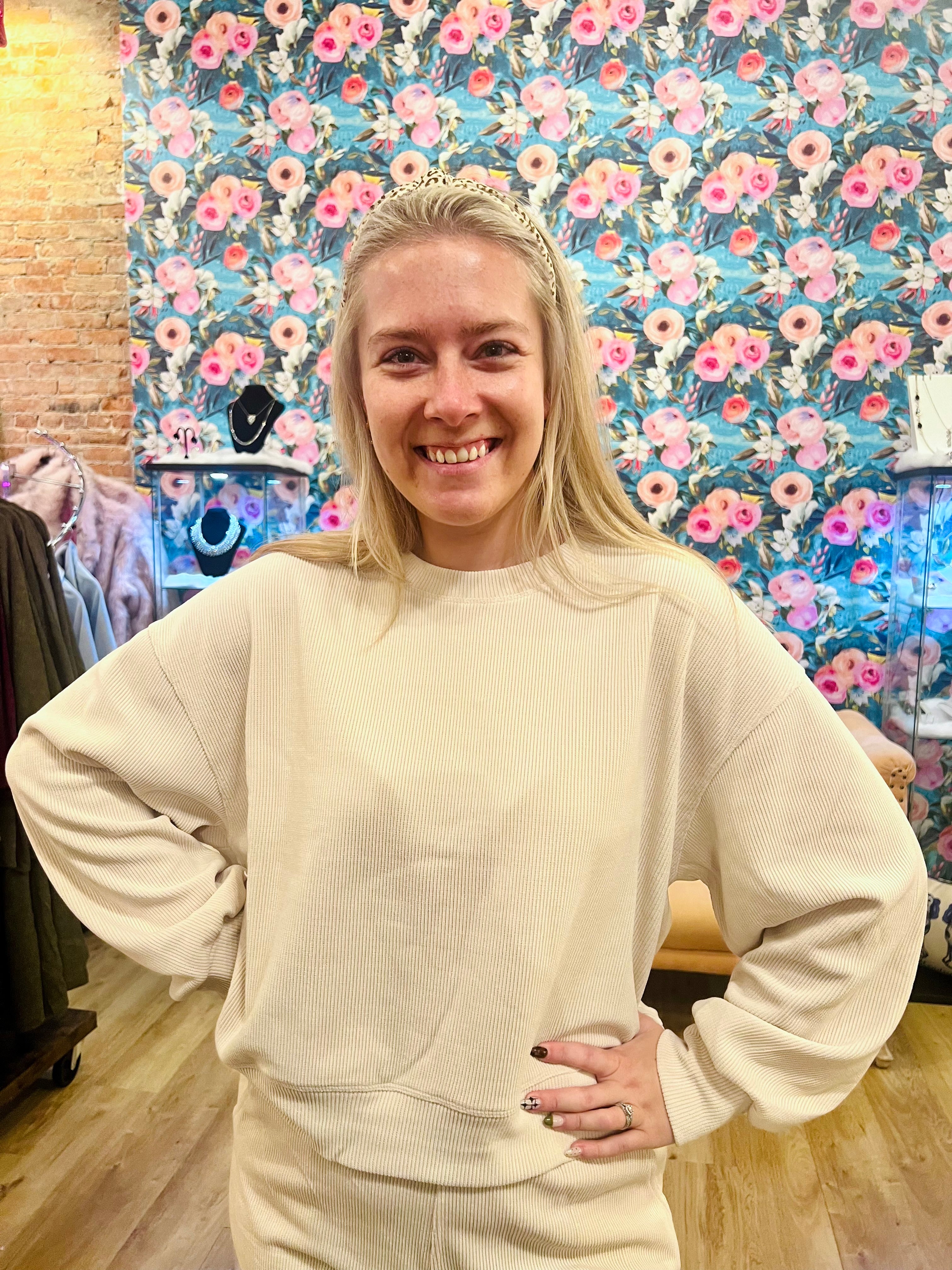 A relaxed-fit long sleeve top in soft corduroy rib-knit fabric. Dropped shoulders, long sleeves and ribbing at the cuffs. Curved hem with a slightly longer back. Don't forget the matching pants!