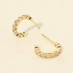 Chic half hoop earrings adorned with bezel-set crystals for a refined touch of sparkle. Lightweight and versatile, they blend modern elegance with timeless style. Perfect for everyday wear or dressing up special occasions, these hoops are a must-have accessory to elevate both casual and formal looks.