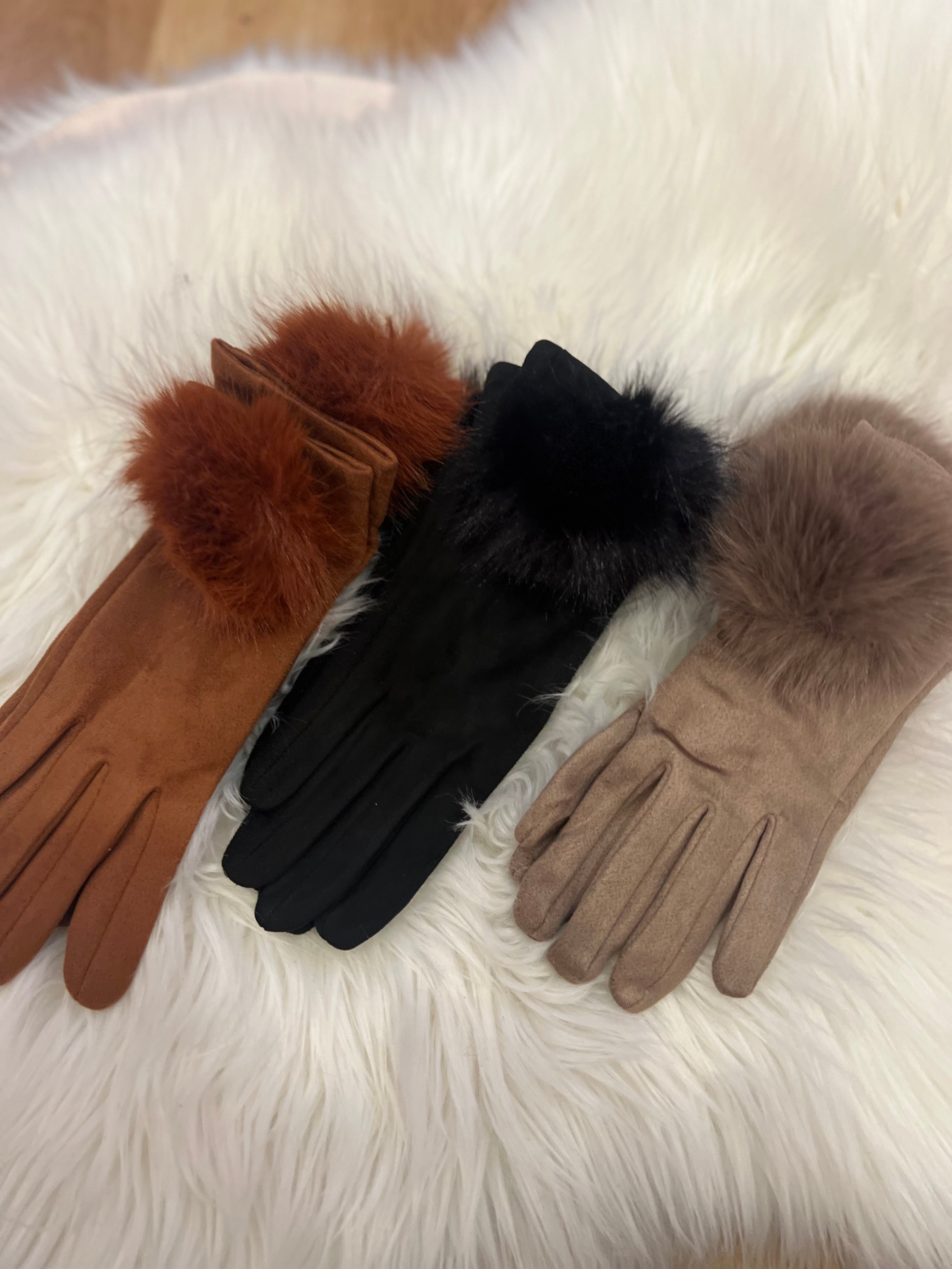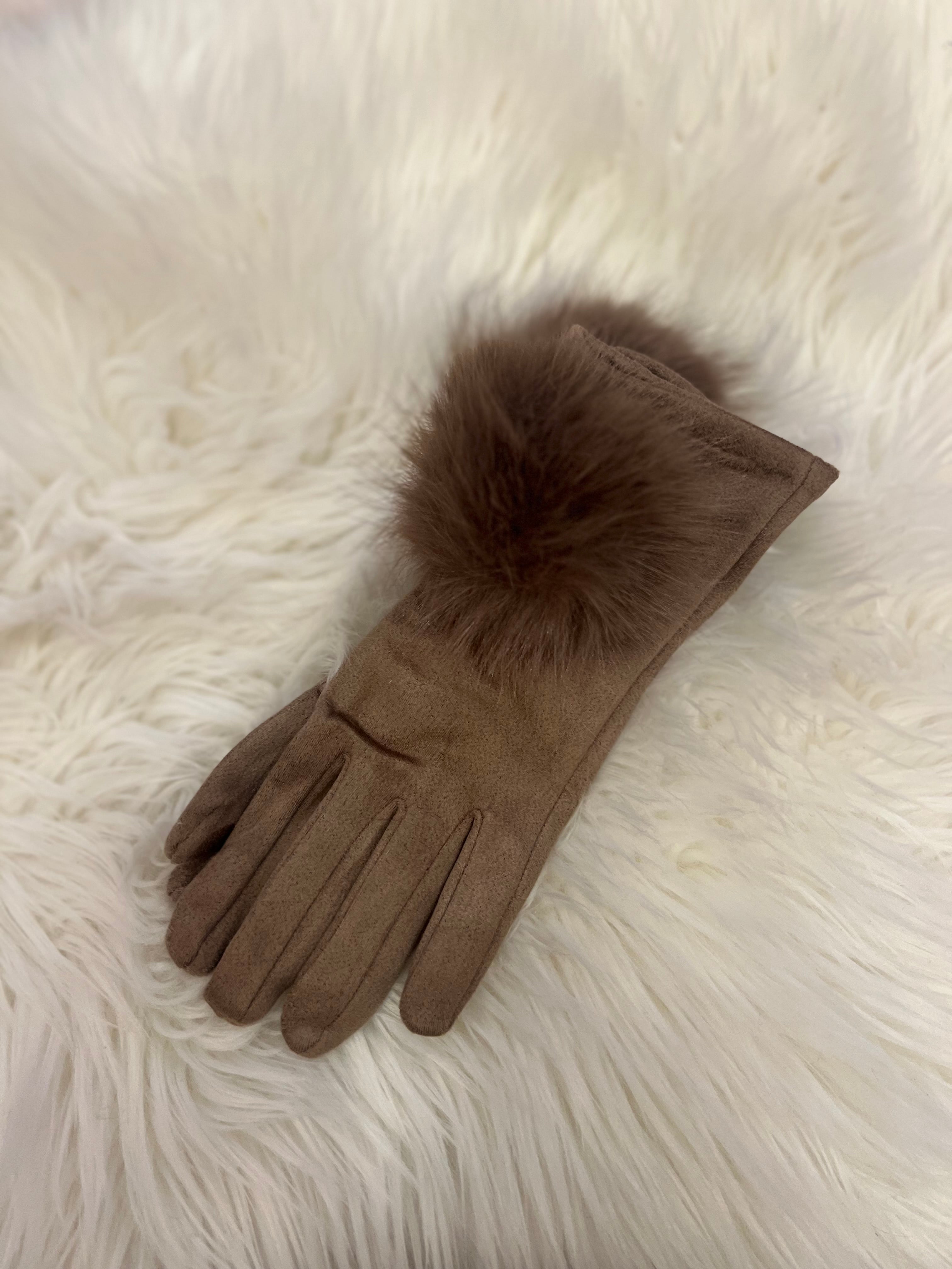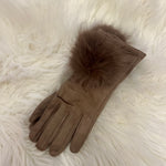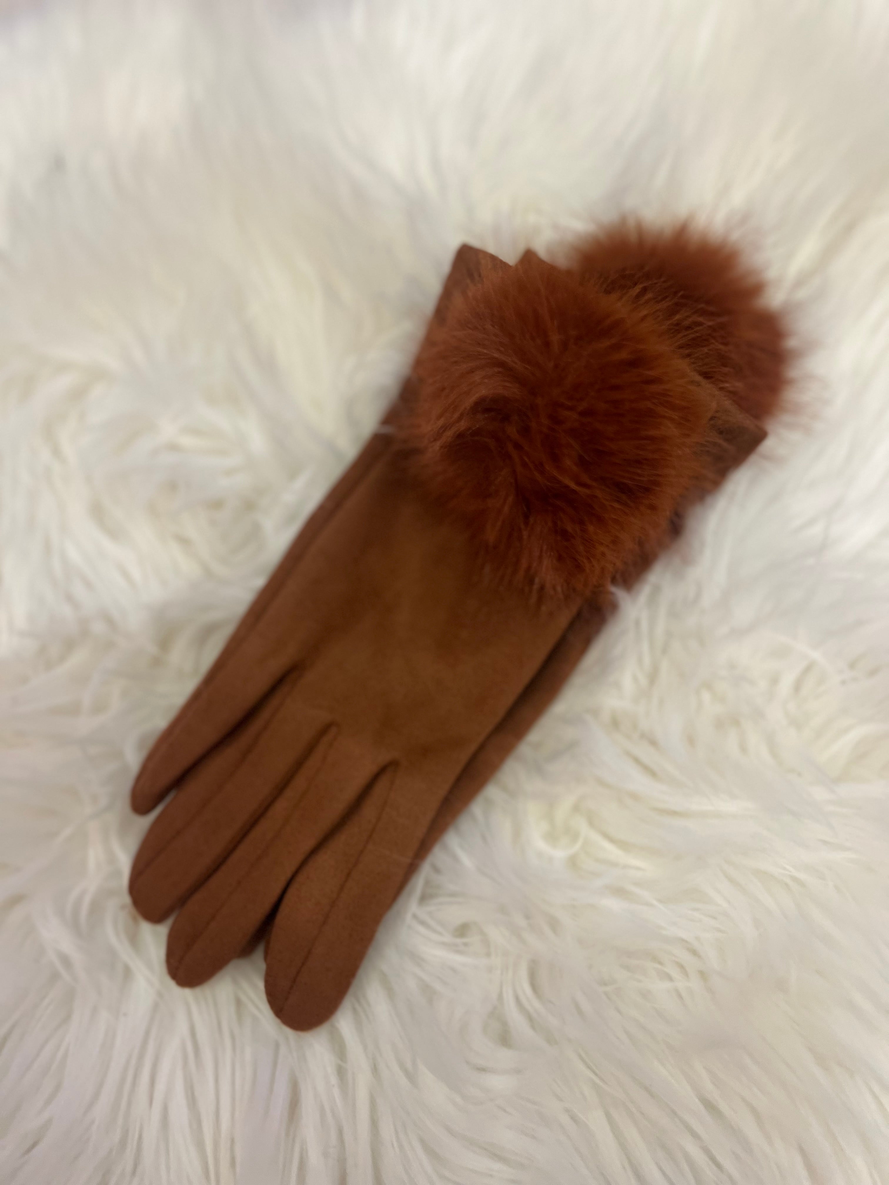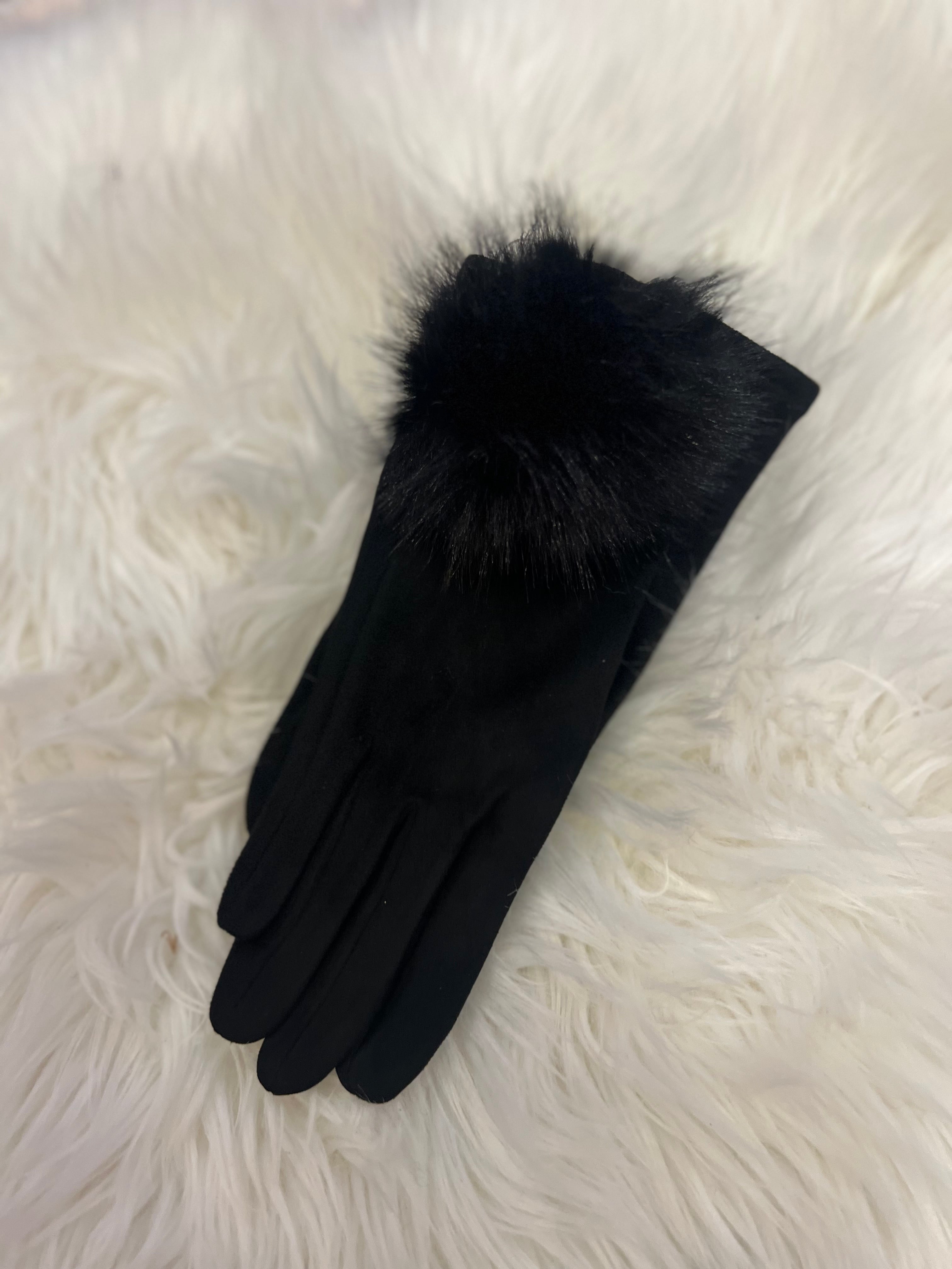 Our collection of gloves make the perfect holiday gift! These suede like gloves have a fun faux fur puffball on the wrist