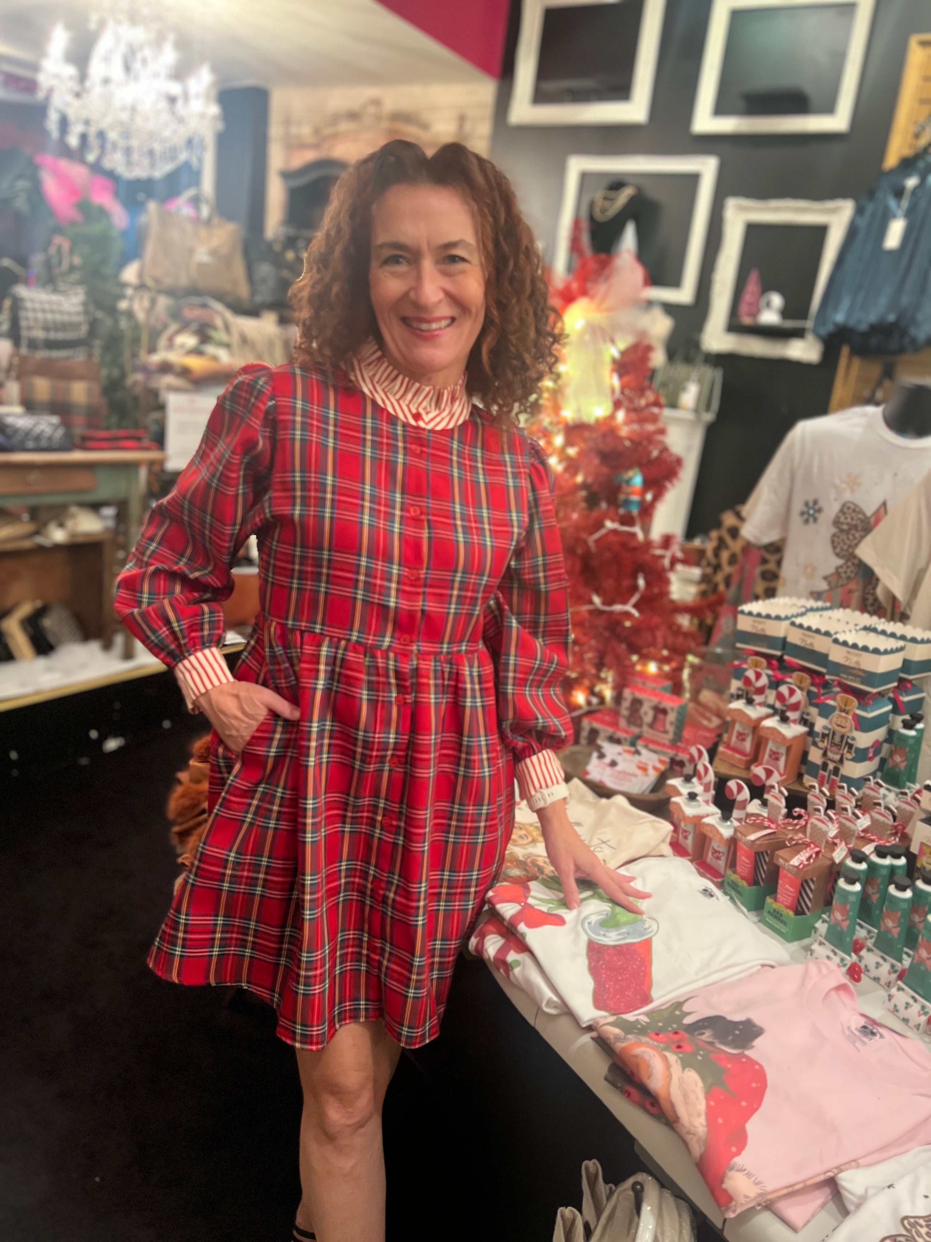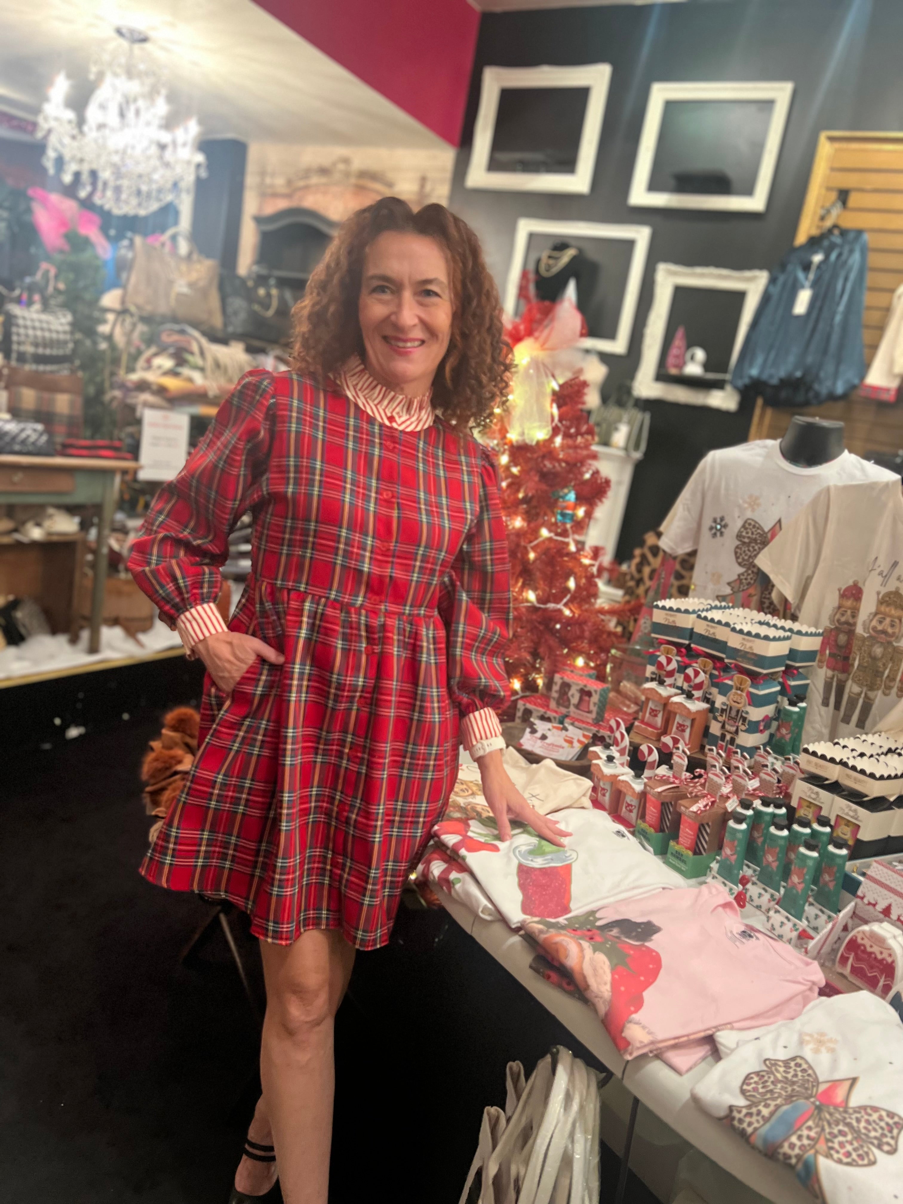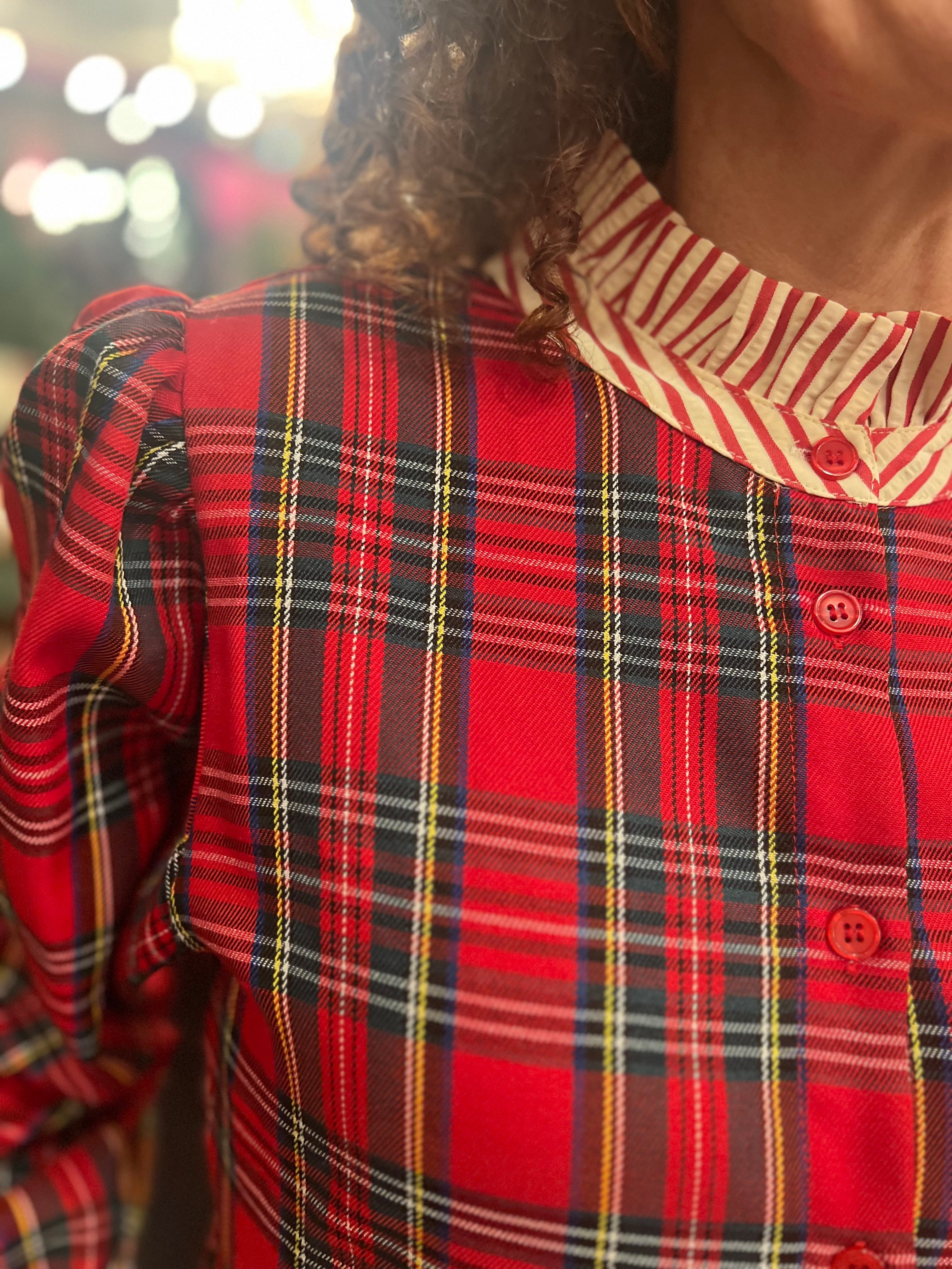 Hey tartan babe! We can't get over how DARLING this dress is by Jodifl! It's perfect for work, your next holiday party or Christmas morning. The ruffled collar & striped details give it a slightly preppy vibe while still being fun
