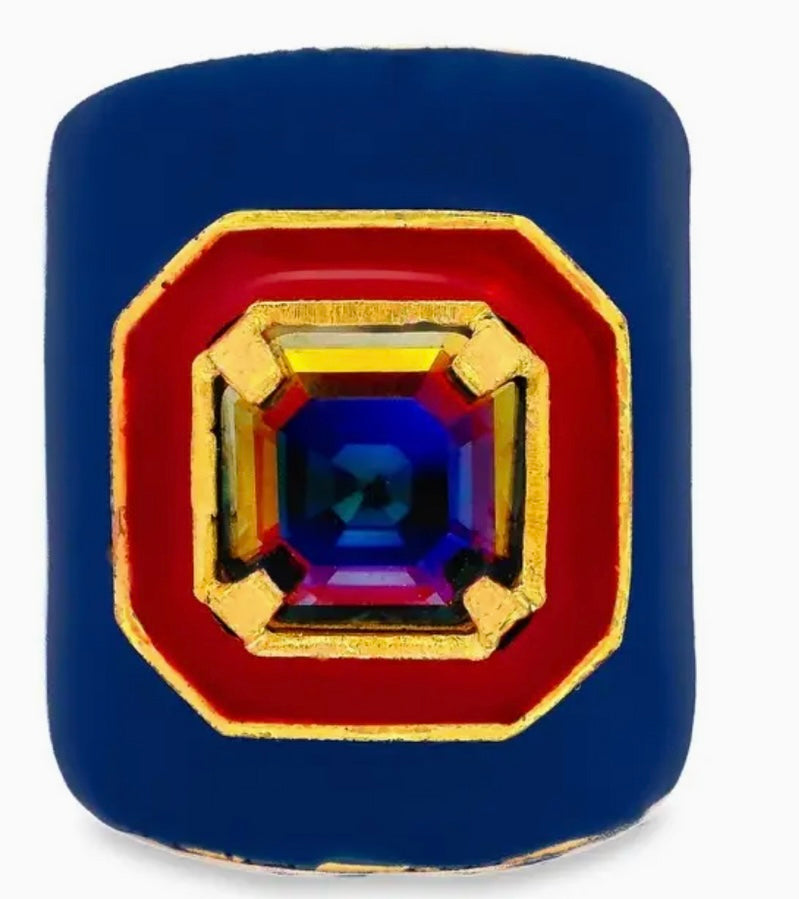 Add a splash of sparkle to your day with the TOVA Mega Dakota Rings in Midnight Express! These adjustable enamel-covered rings come in three dazzling colors, each featuring unique jewel shapes to match your every mood. Playful and versatile, they’re perfect for mixing, matching, and stacking to create your own signature style.