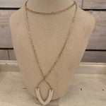 *Whats Hot - Matte Gold and White Wood Pointed Teardrop Necklace