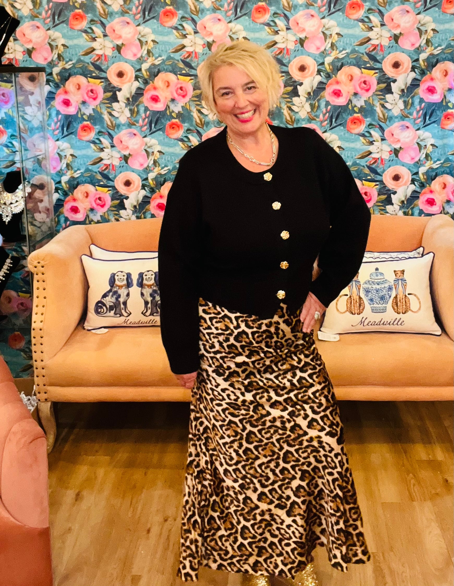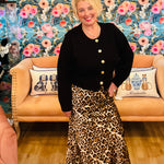 Take a walk on the wild side! This elegant satin leopard print skirt pairs great with your favorite black sweater or velvet blazer. It's perfect for transitioning from fall into winter