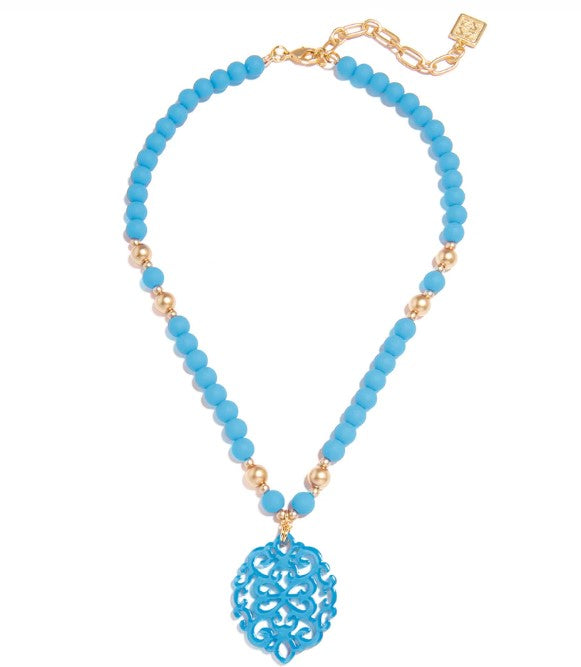 *Zenzii - Damask Pendant Beaded Collar Necklace